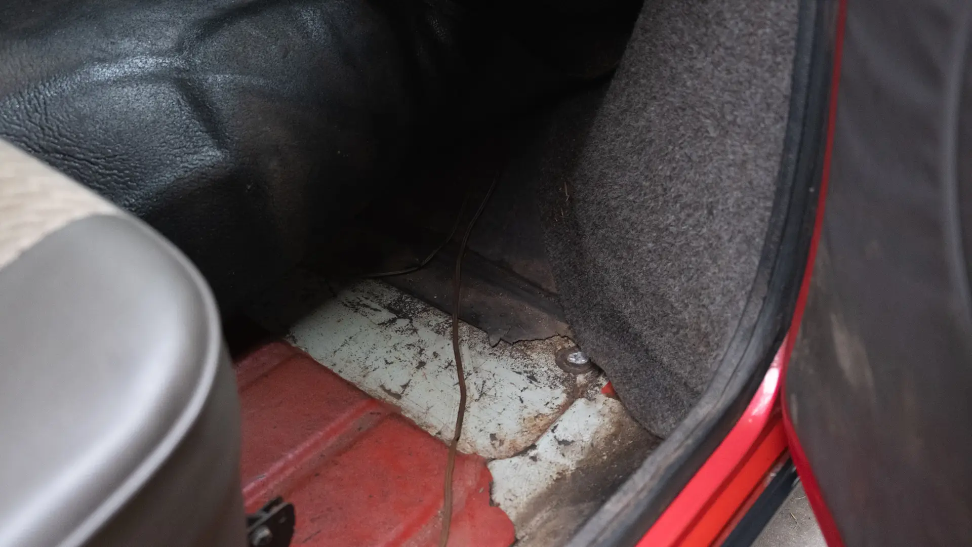 The left front of a red Austin Mini 1000 E Magic