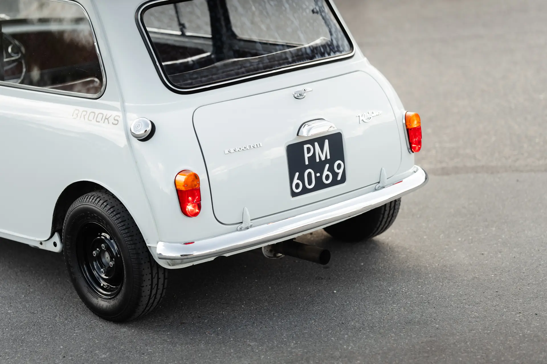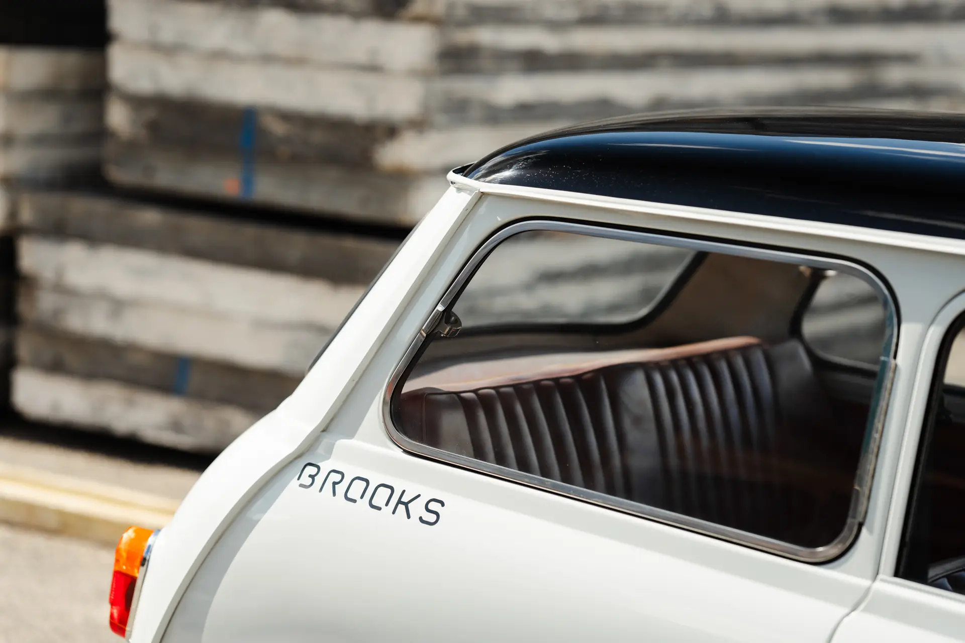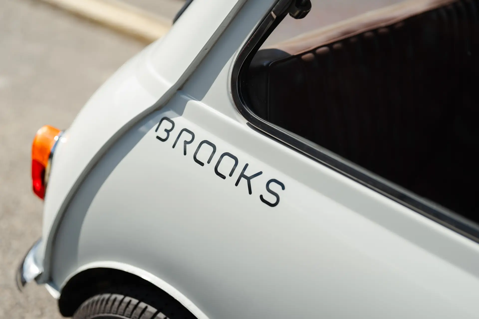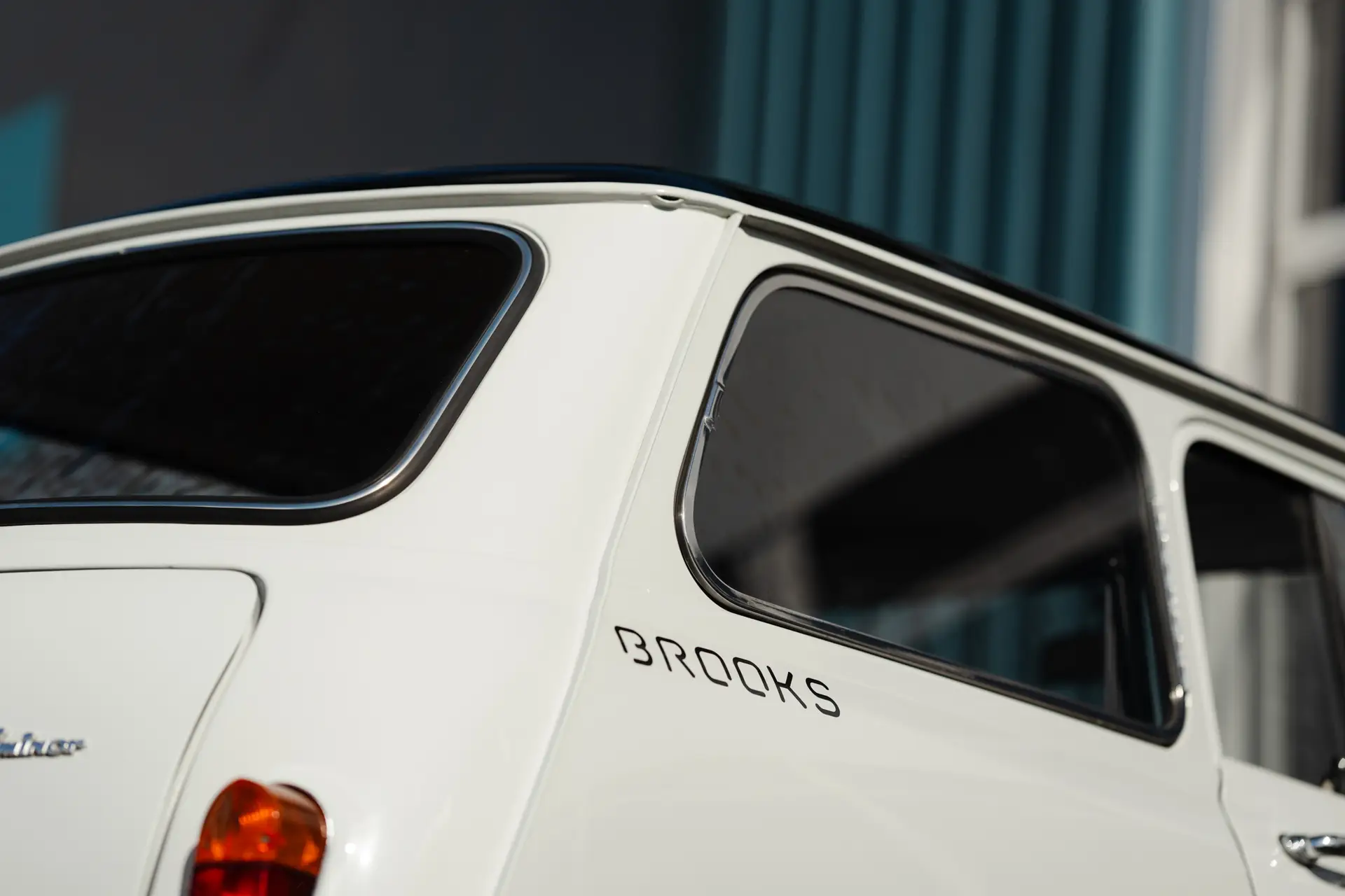 This isn’t your typical classic Mini. It’s not even just another one-of-a-kind, unwelded Mini MK1. What we have here is a bespoke creation from Brooks Build, born from a 1967 Innocenti Mini Minor MK1 we personally brought straight from Italy. Under the hood, we now find a 1300 engine with significantly more power than the original. To bring this power to a stop, we have installed disc brakes at the front. The suspension of this Mini is hydrolastic, making the car very comfortable. The good sound insulation, which was standard behind the firewall in Italy, also helps a lot.