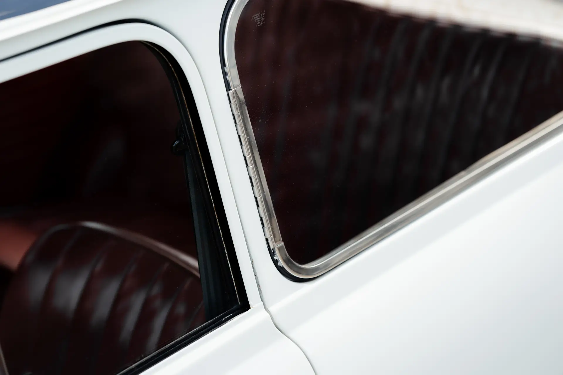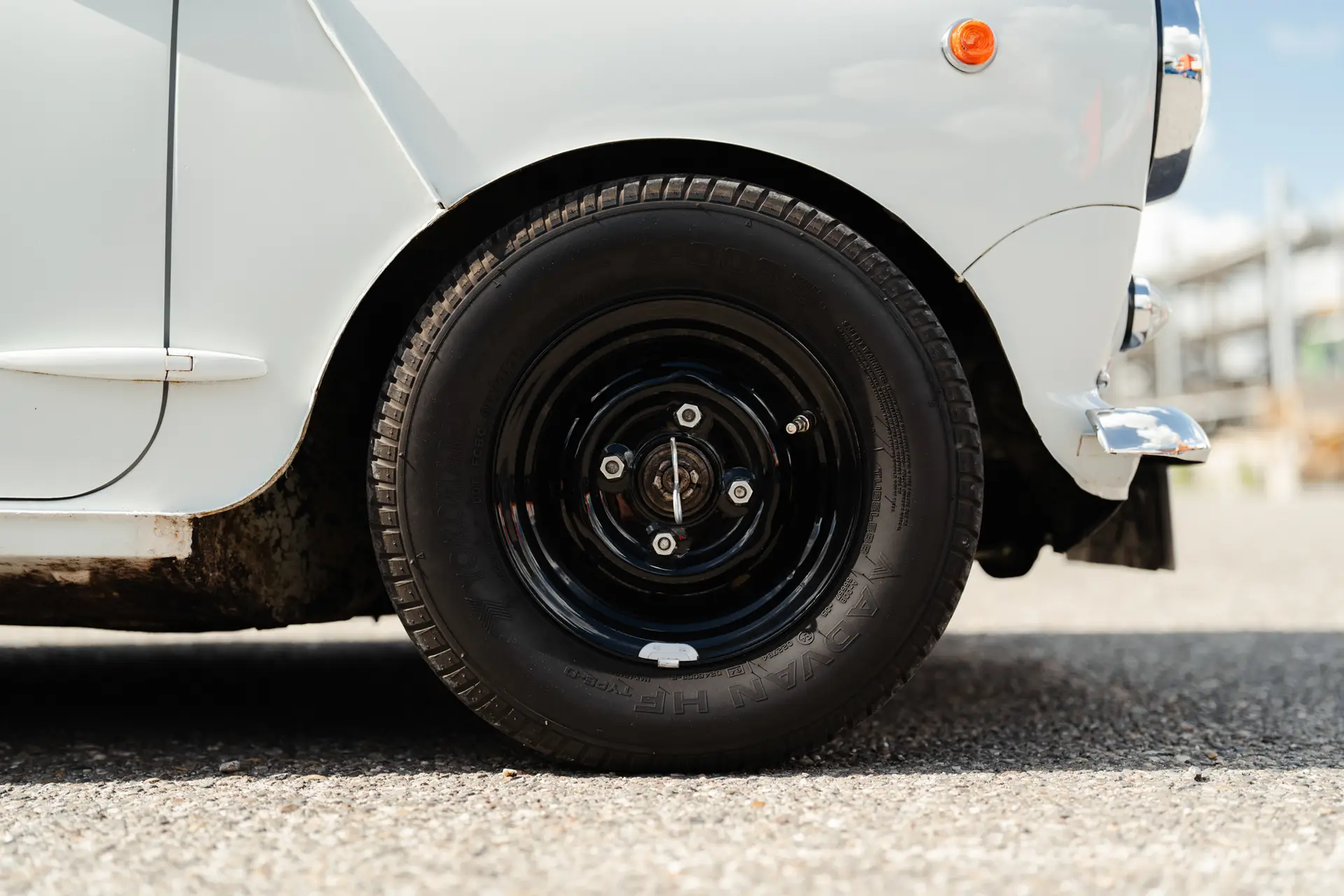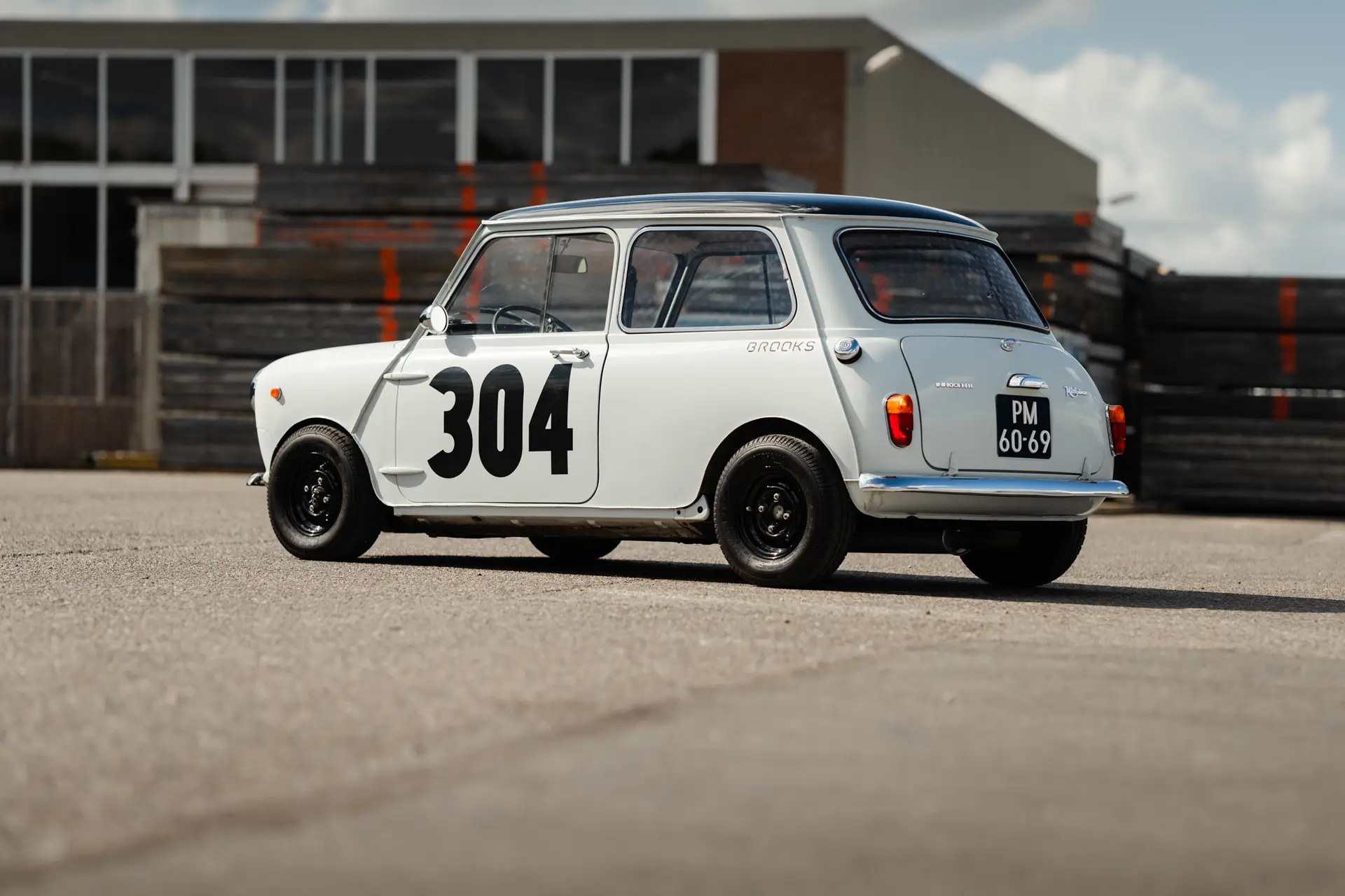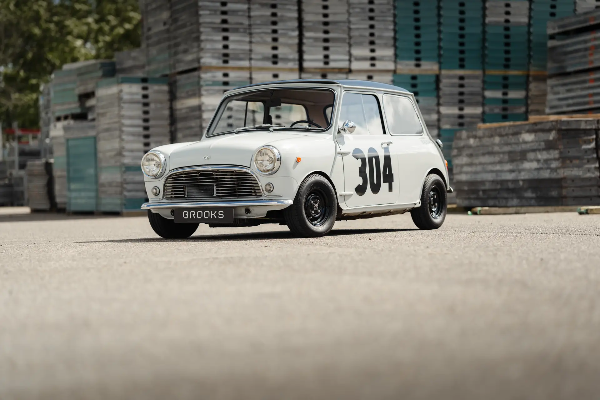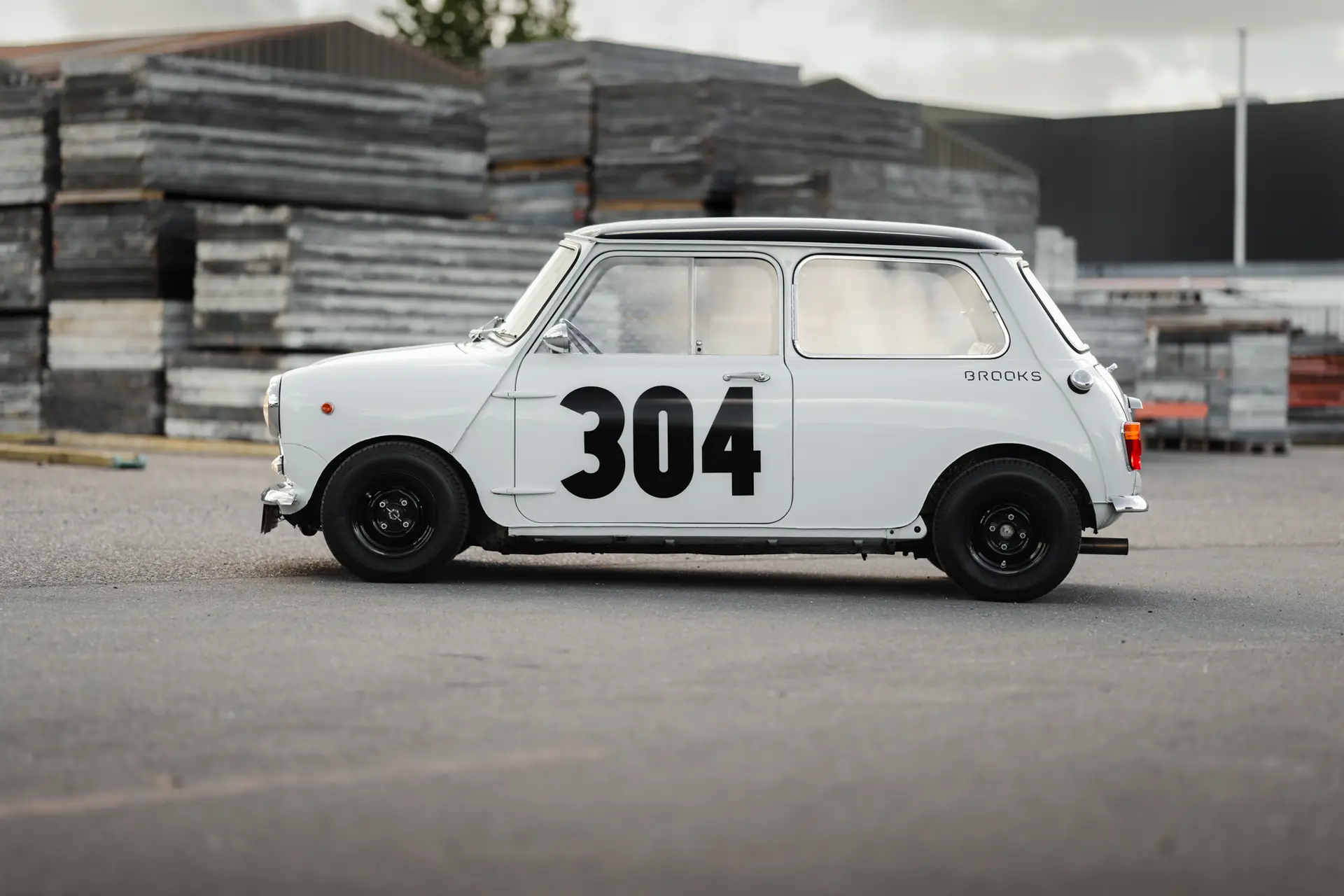 This isn’t your typical classic Mini. It’s not even just another one-of-a-kind, unwelded Mini MK1. What we have here is a bespoke creation from Brooks Build, born from a 1967 Innocenti Mini Minor MK1 we personally brought straight from Italy. Under the hood, we now find a 1300 engine with significantly more power than the original. To bring this power to a stop, we have installed disc brakes at the front. The suspension of this Mini is hydrolastic, making the car very comfortable. The good sound insulation, which was standard behind the firewall in Italy, also helps a lot.