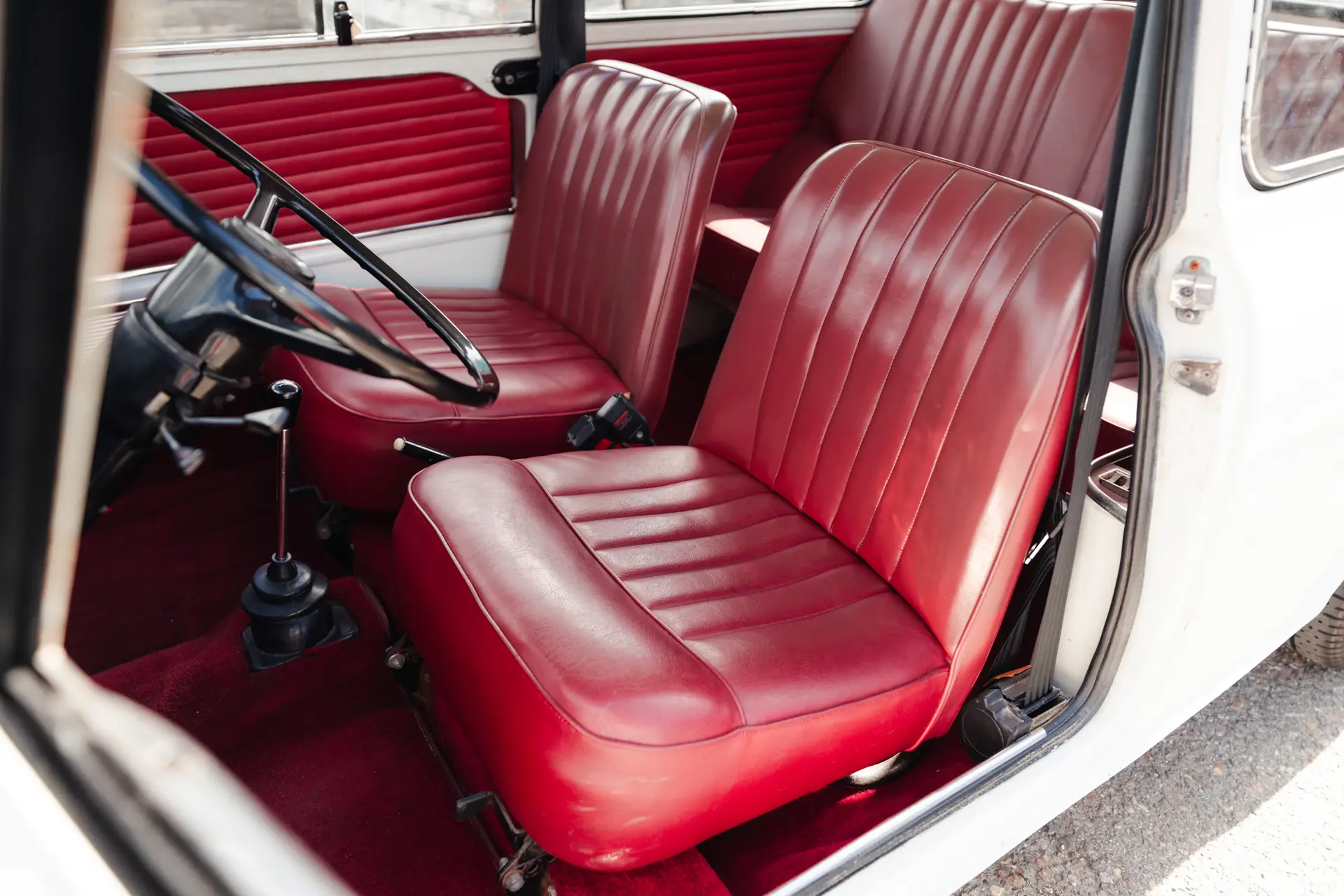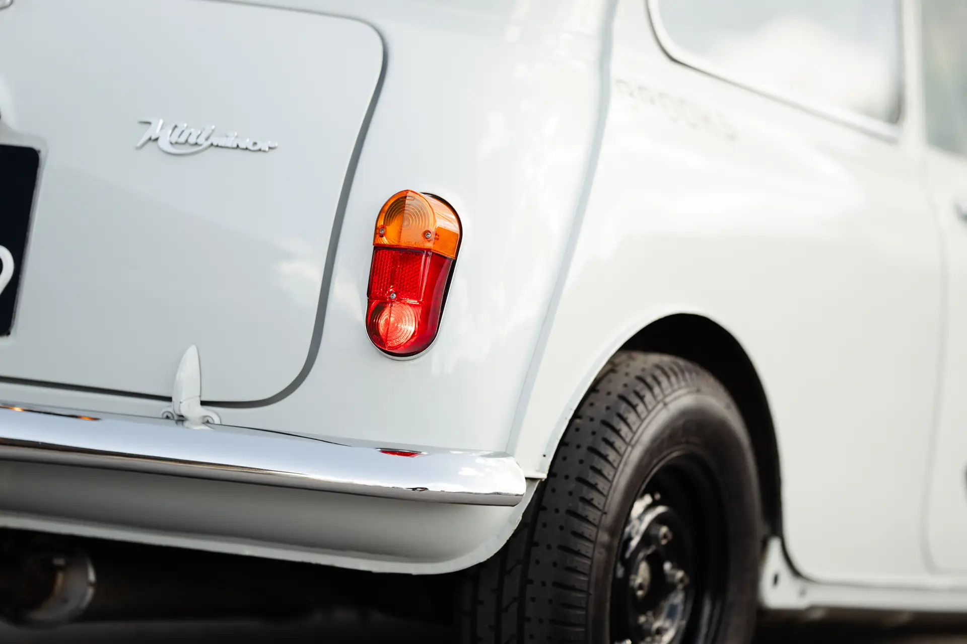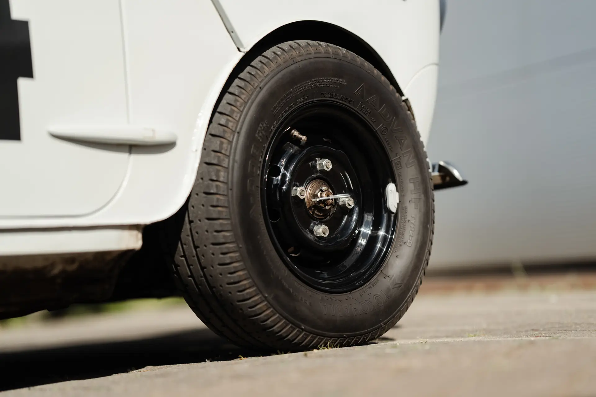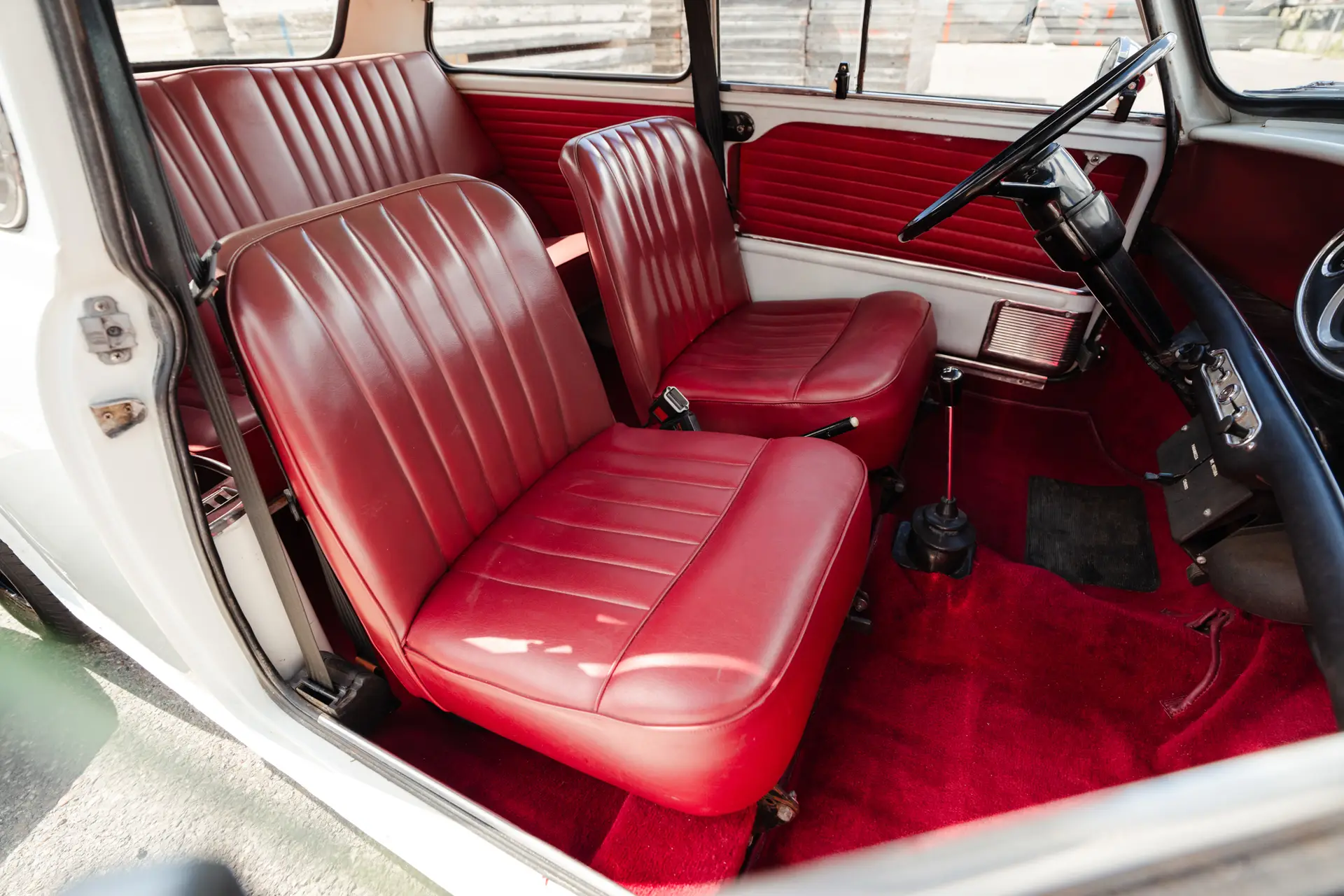 This isn’t your typical classic Mini. It’s not even just another one-of-a-kind, unwelded Mini MK1. What we have here is a bespoke creation from Brooks Build, born from a 1967 Innocenti Mini Minor MK1 we personally brought straight from Italy. Under the hood, we now find a 1300 engine with significantly more power than the original. To bring this power to a stop, we have installed disc brakes at the front. The suspension of this Mini is hydrolastic, making the car very comfortable. The good sound insulation, which was standard behind the firewall in Italy, also helps a lot.