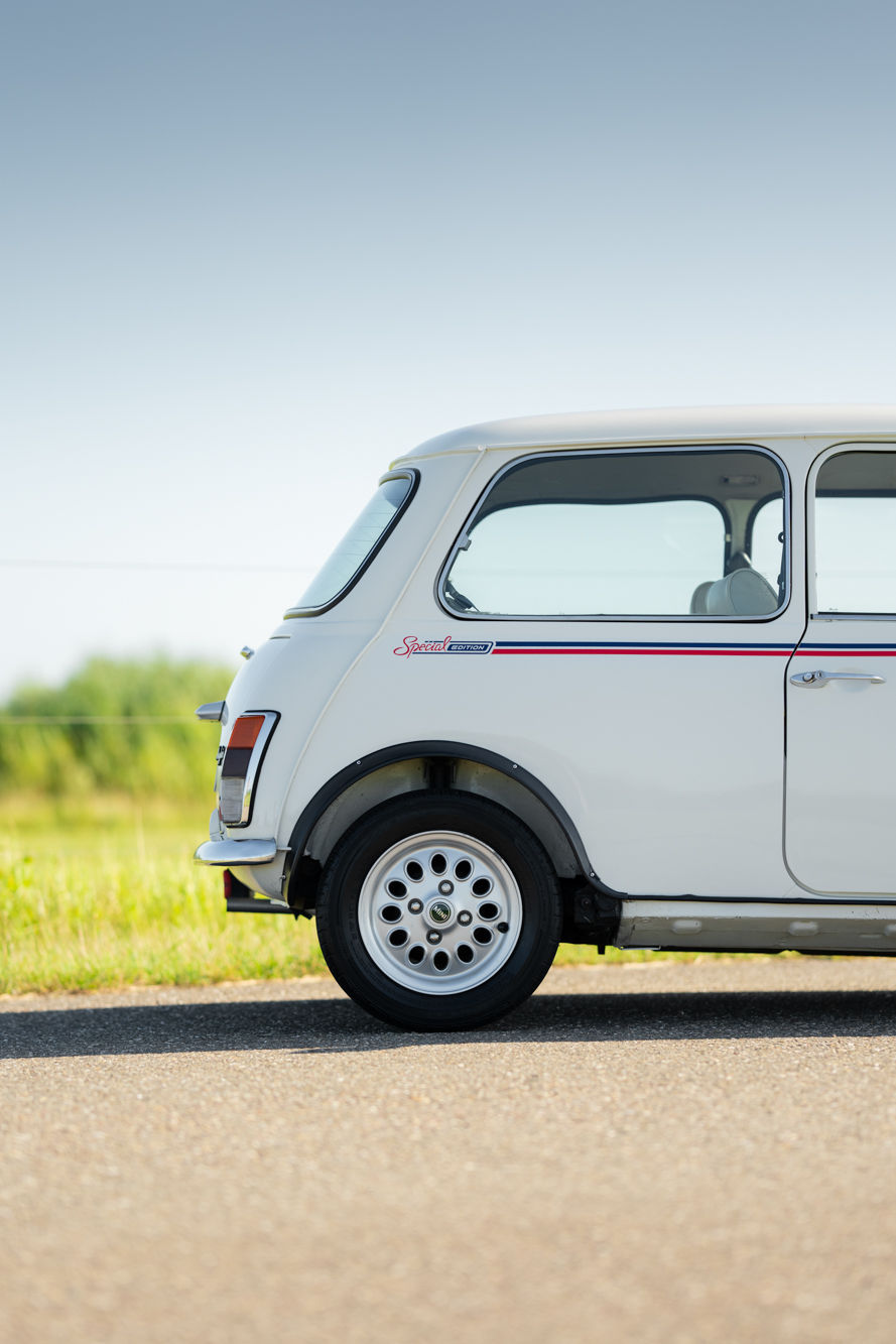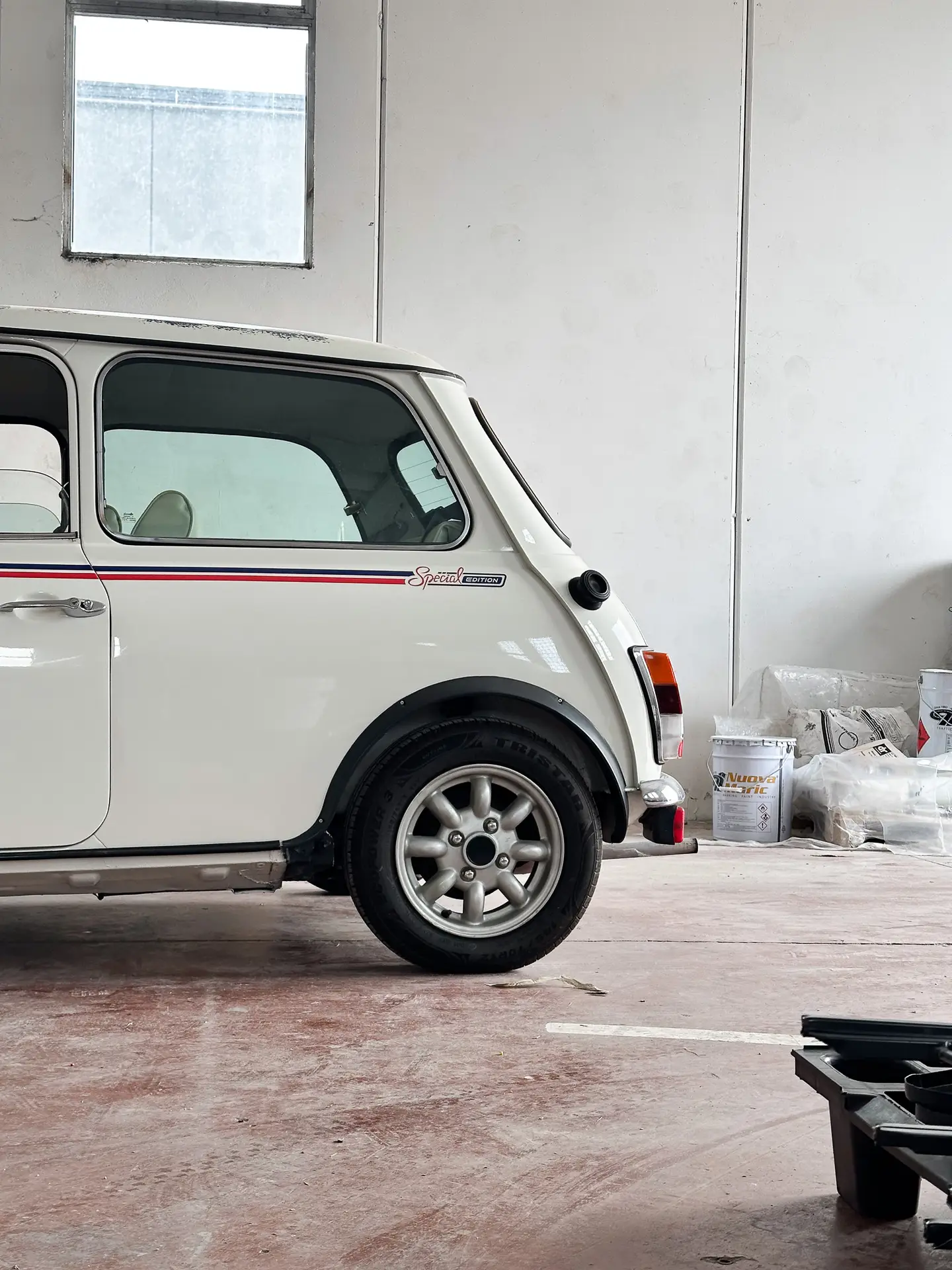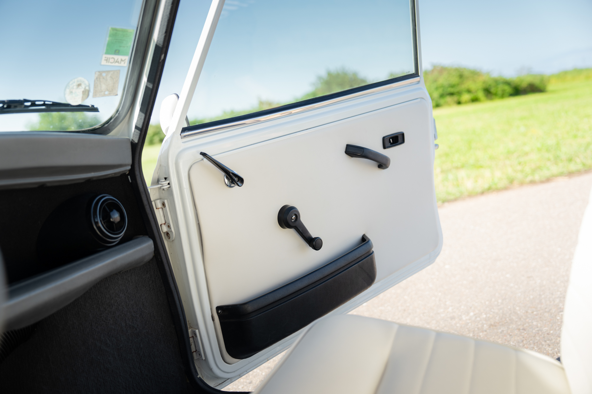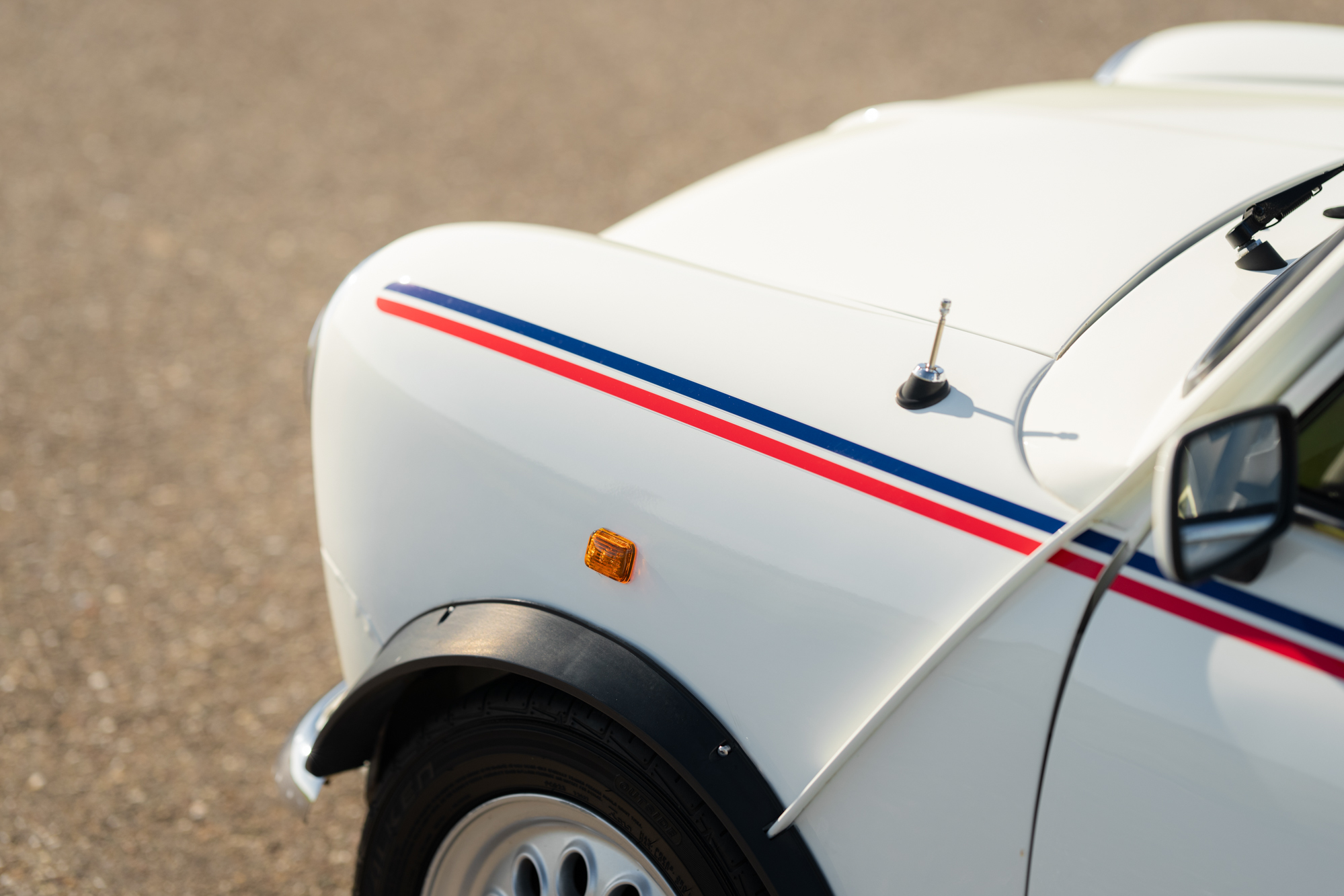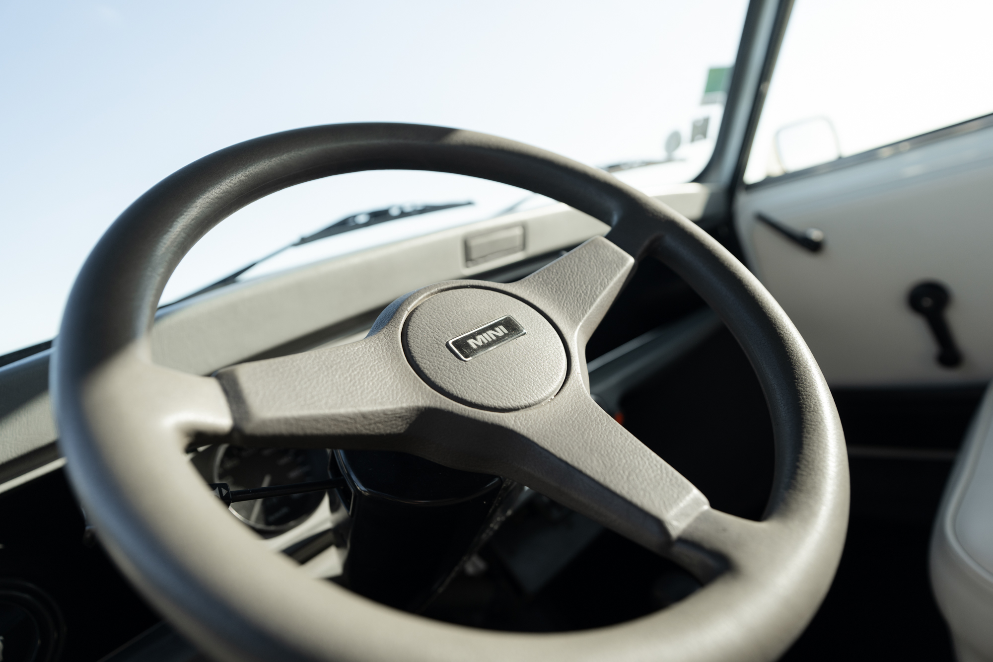 We found this special Mini deep in the Apennine Mountains of Italy, just east of Rome, having been imported from France where she was originally delivered. This Italian region is key: the dry climate means the car has had no real experience with rain or salty weather. The bodywork is truly good, visible in the wheel arches where the original paintwork is still present.