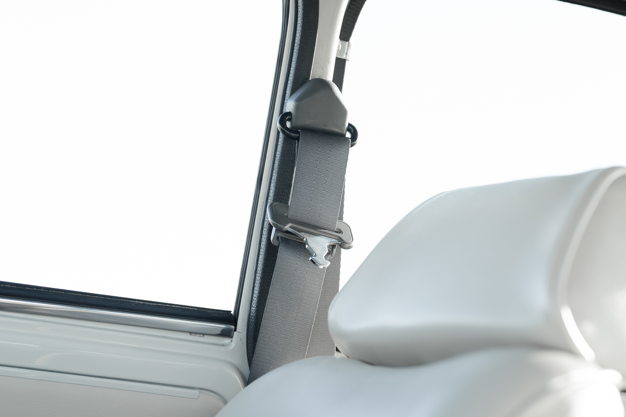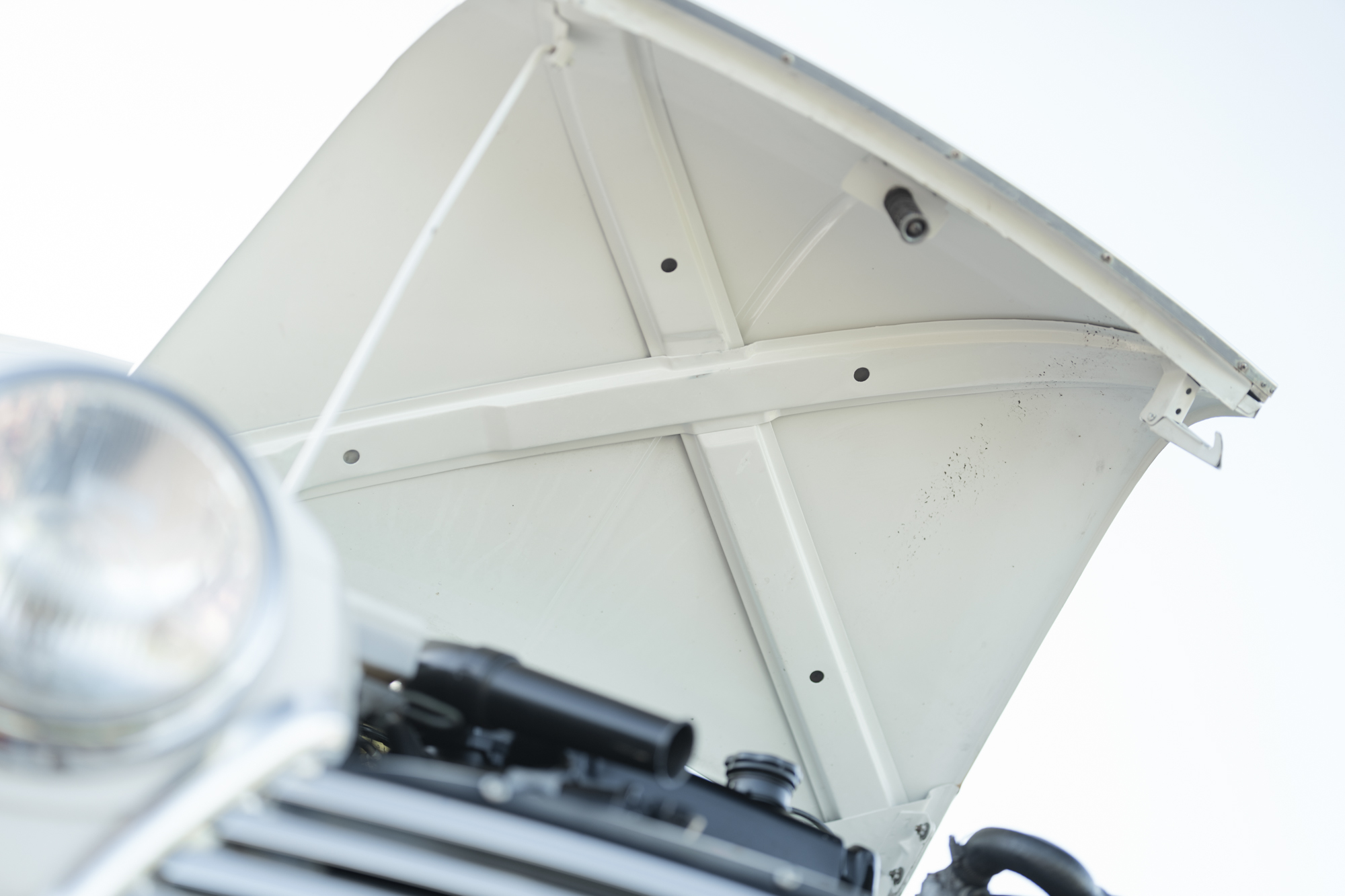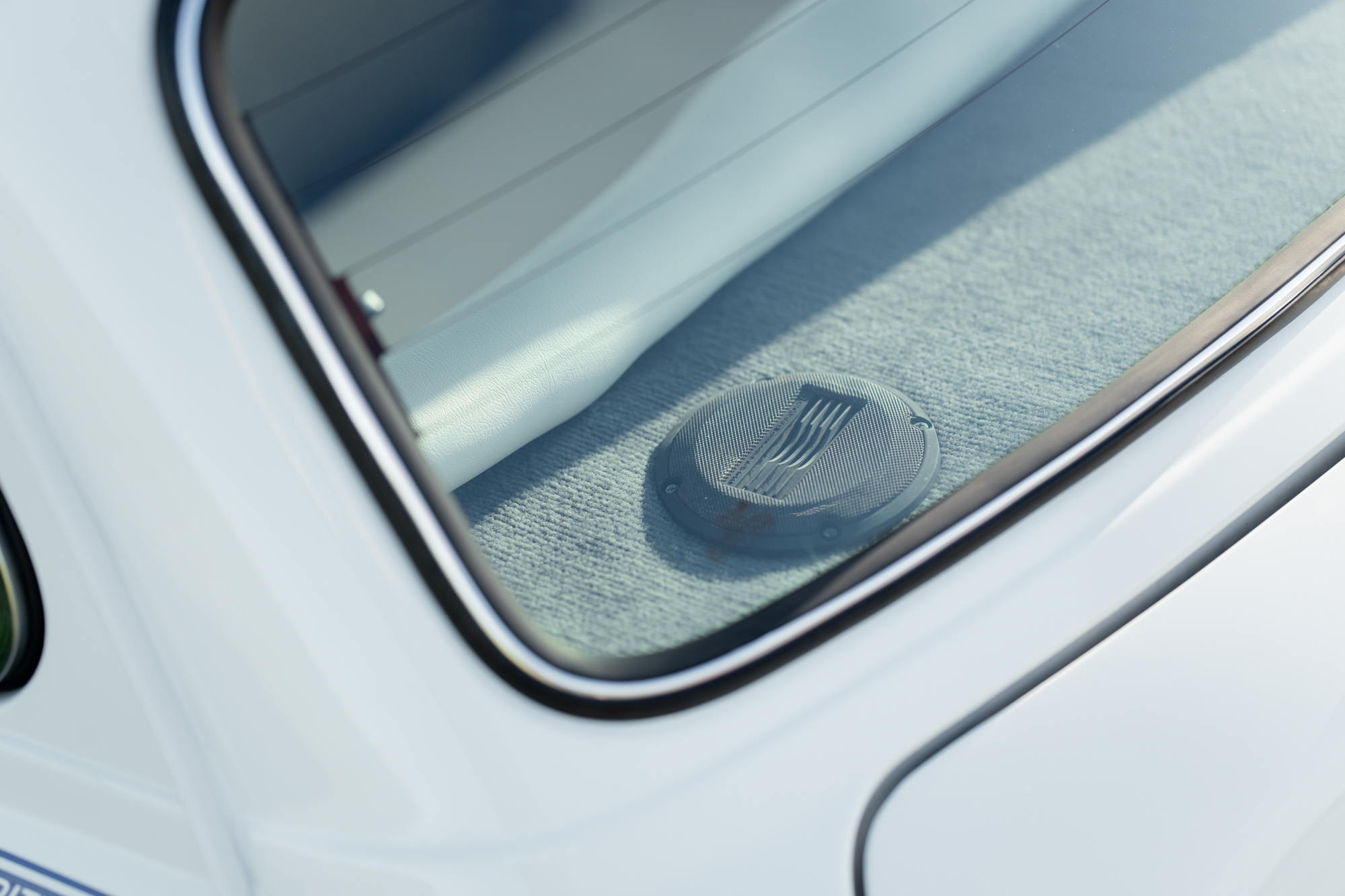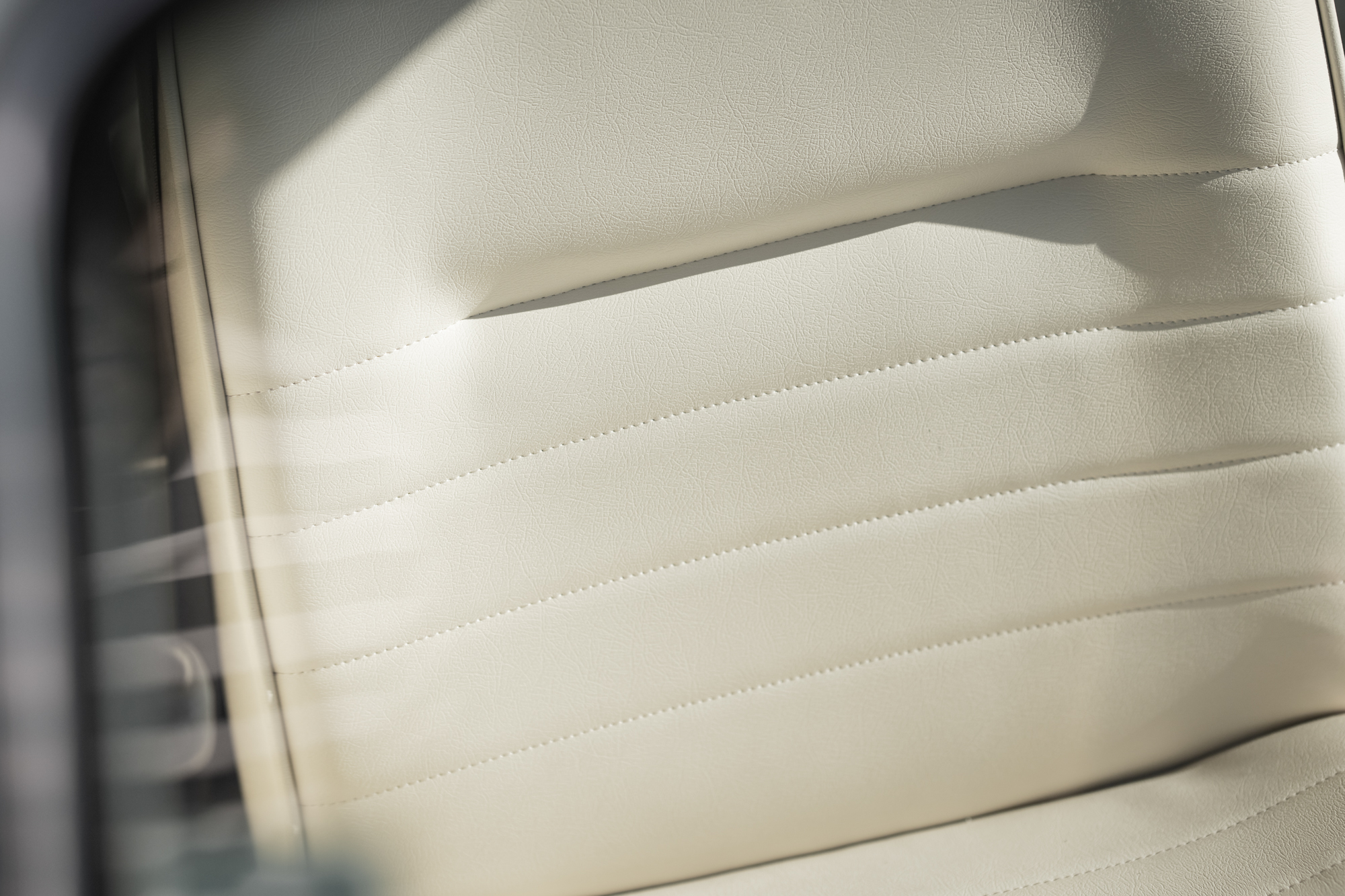 On the interior she has undergone a great transformation. The seats are finished in white leather with white stitching, while the original carpet is in exceptional condition. There’s added extra sound deadening to the floors for more comfort.