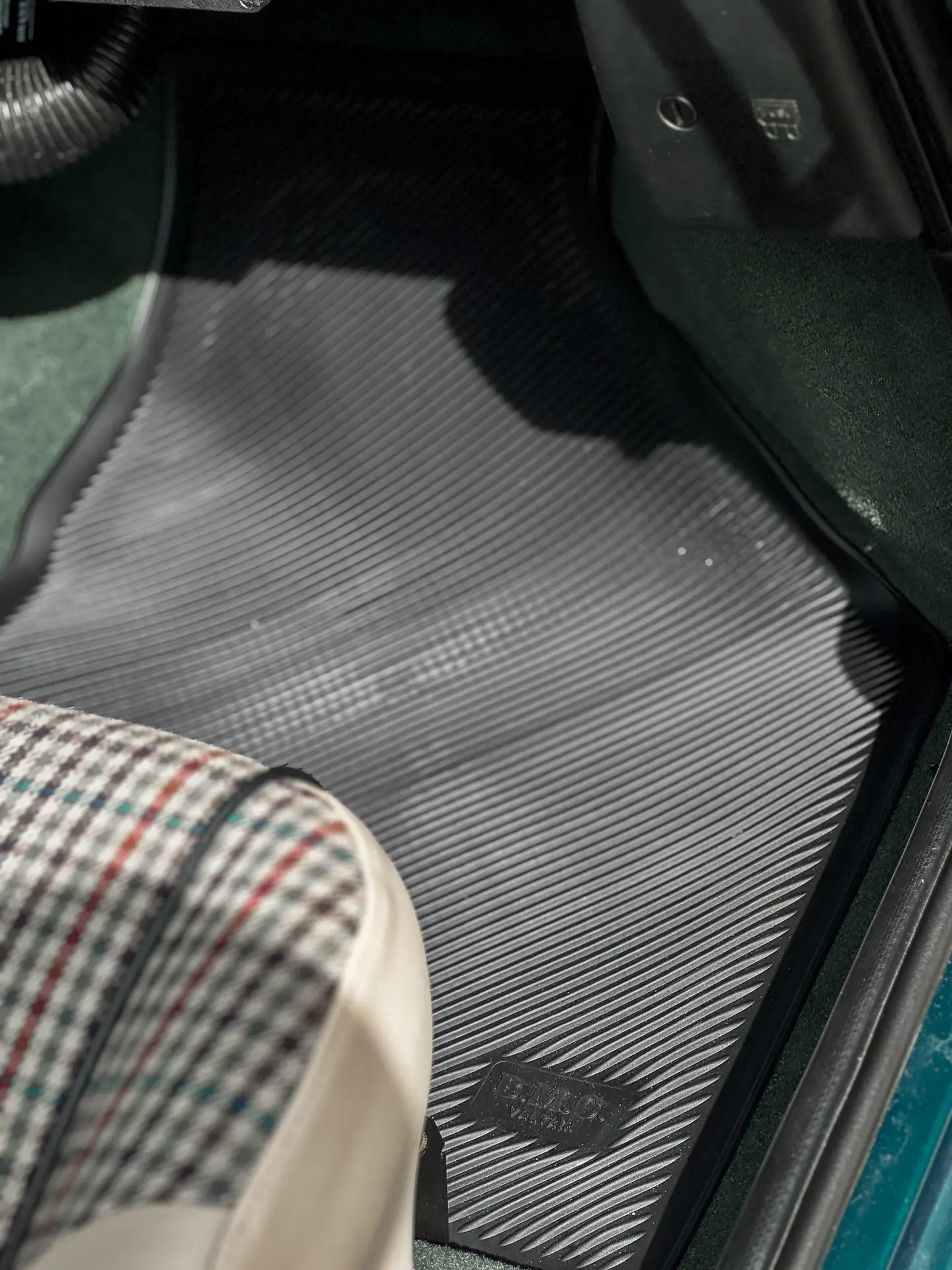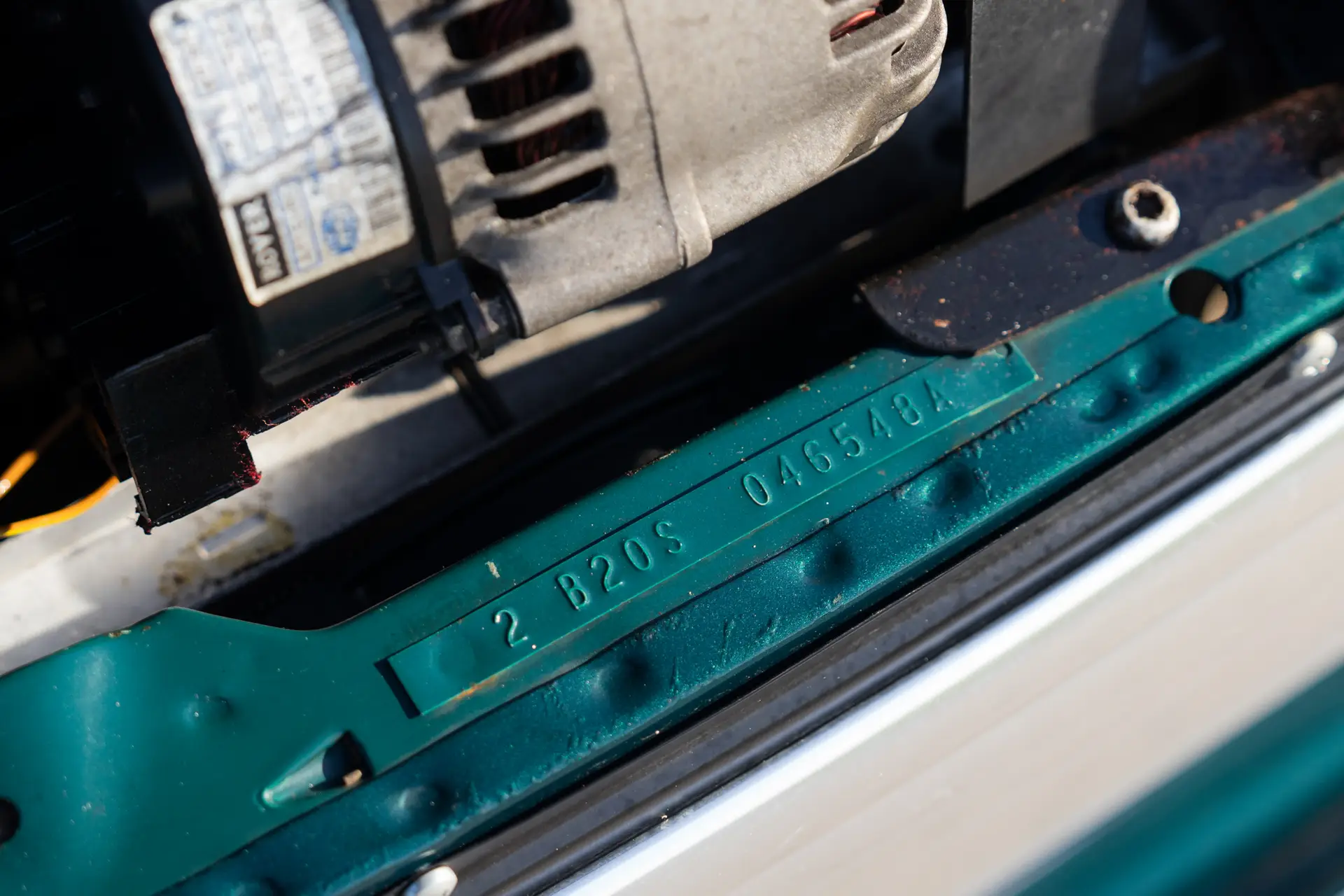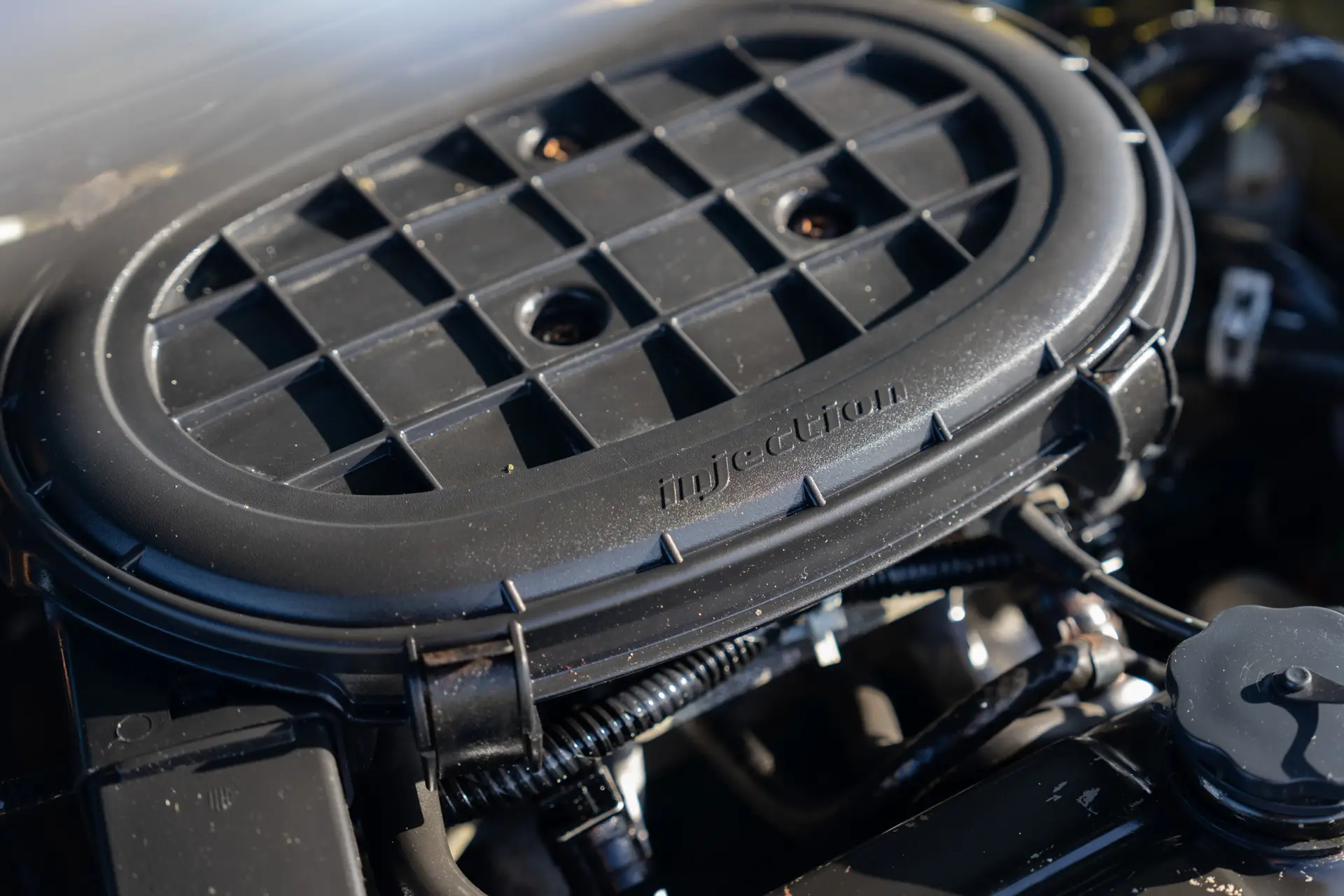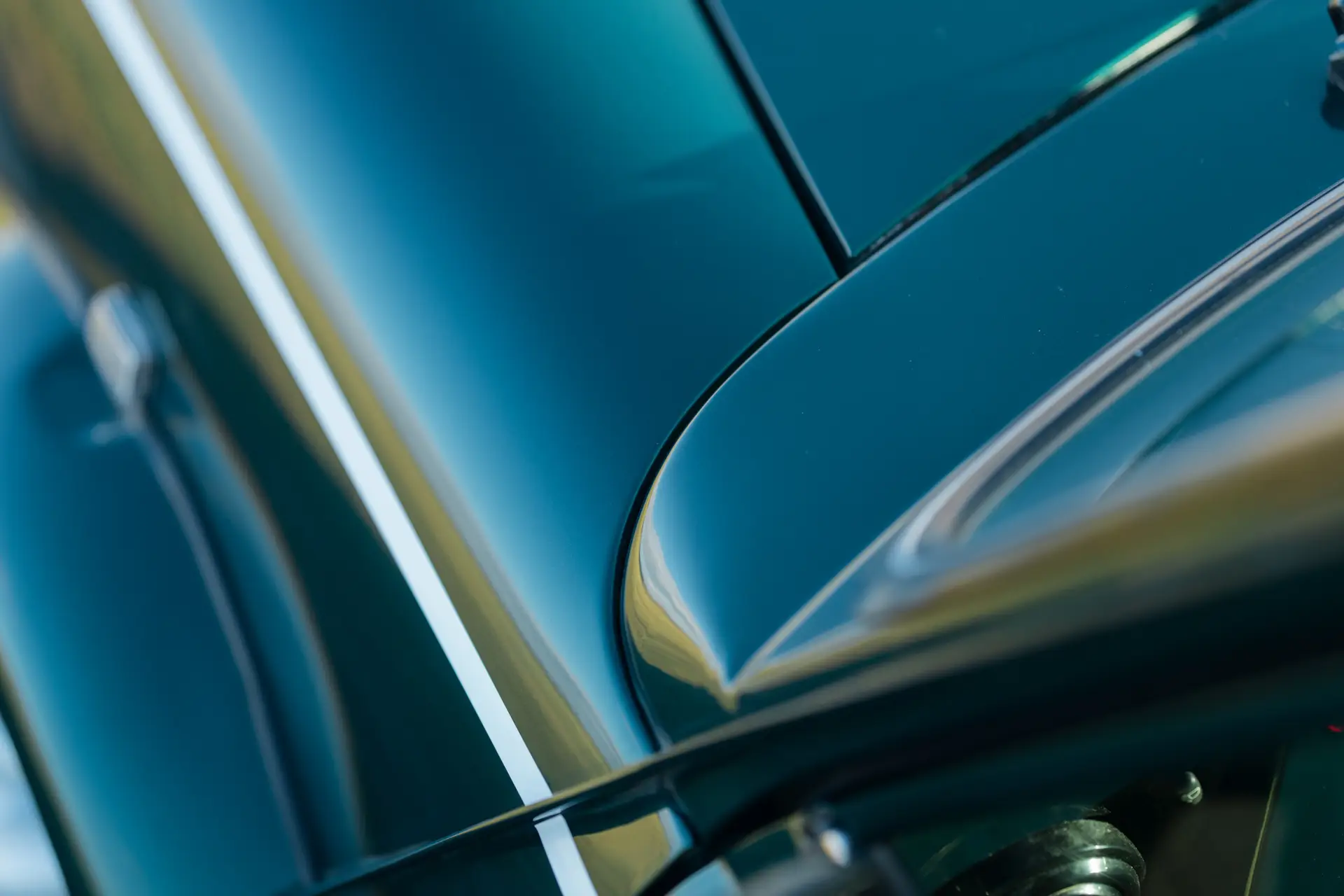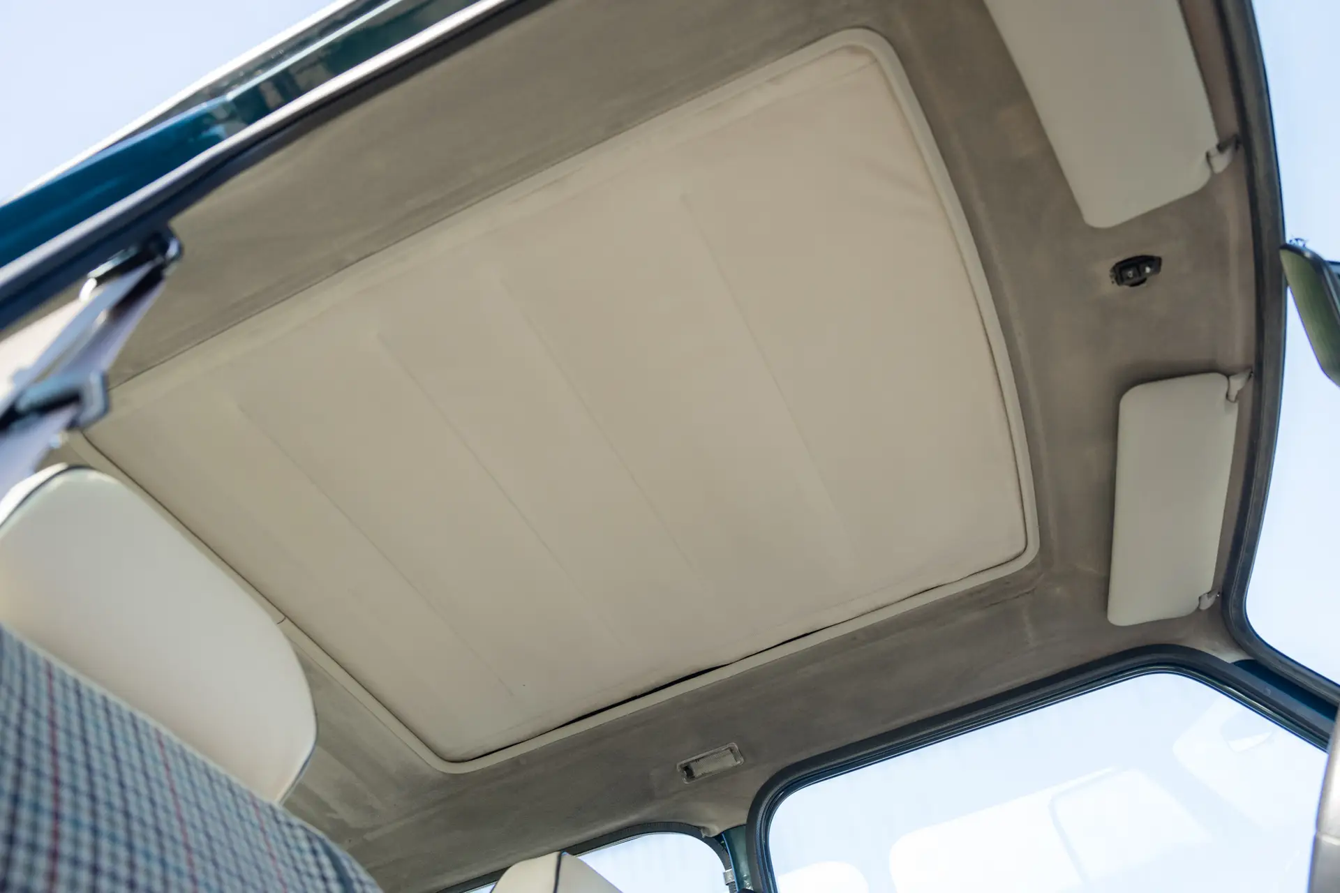 The interior is well-preserved, featuring a British Racing Green dashboard with Magnolia dials. There are no signs of wear or cracks, reflecting the car’s light use.