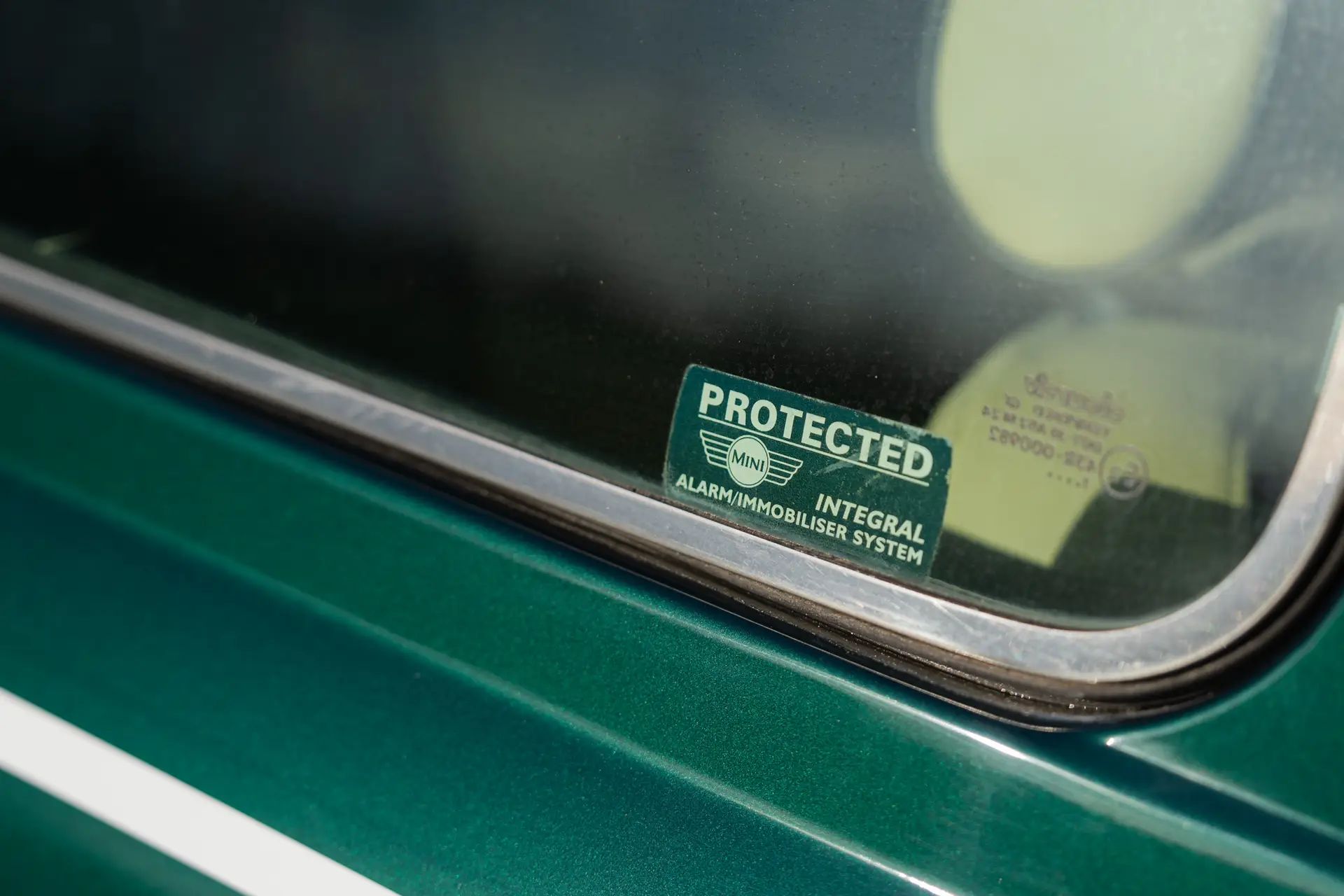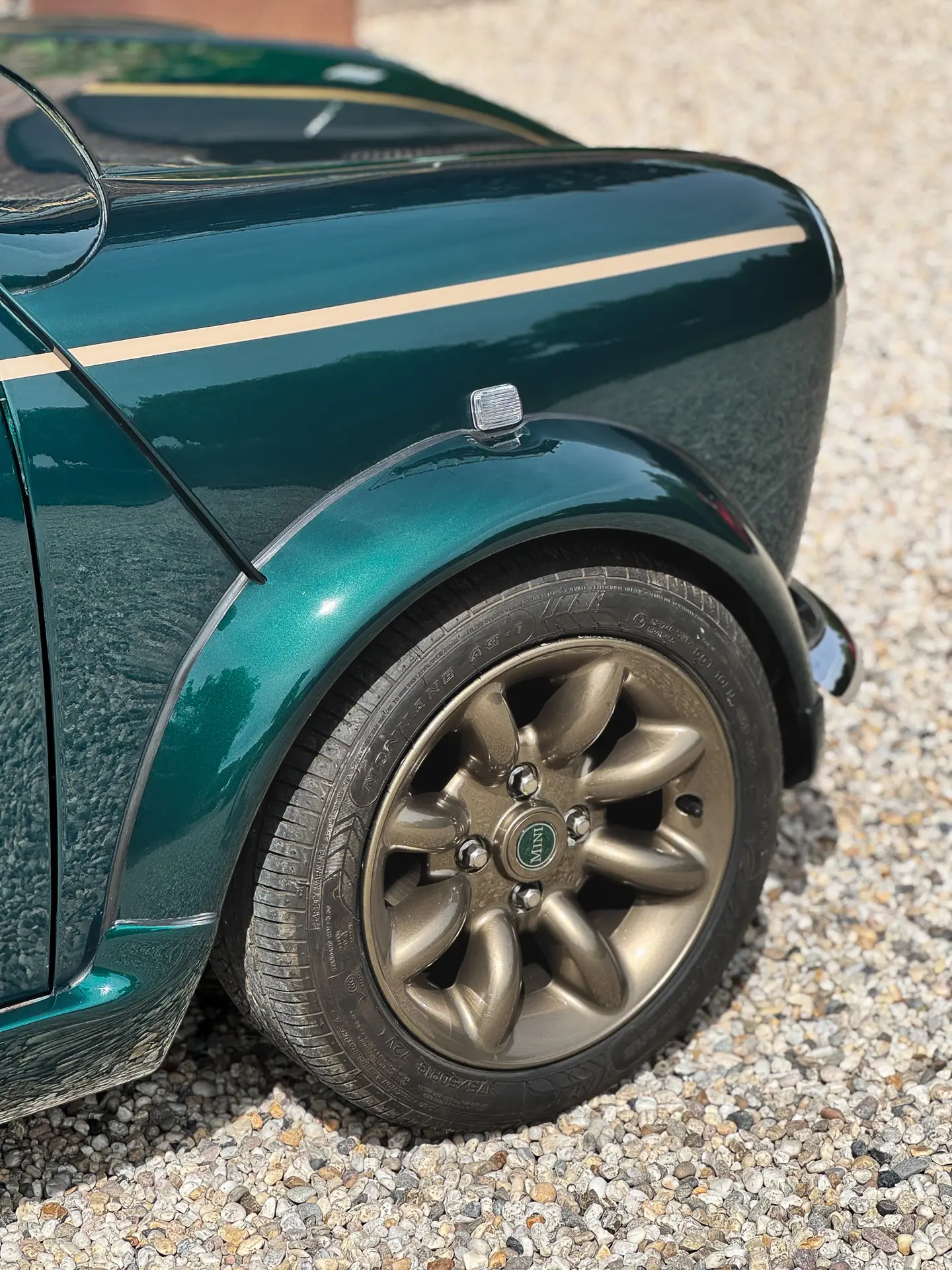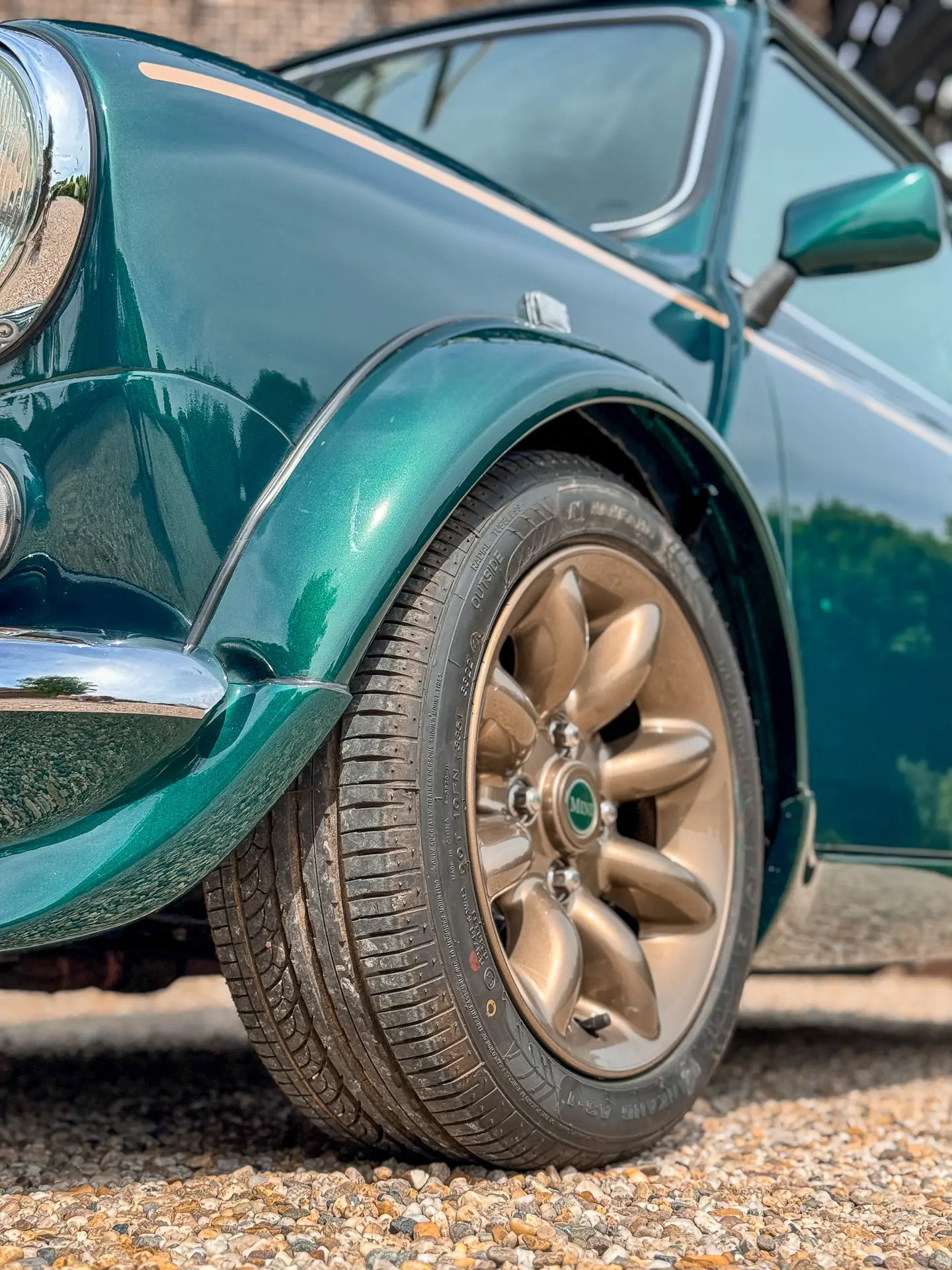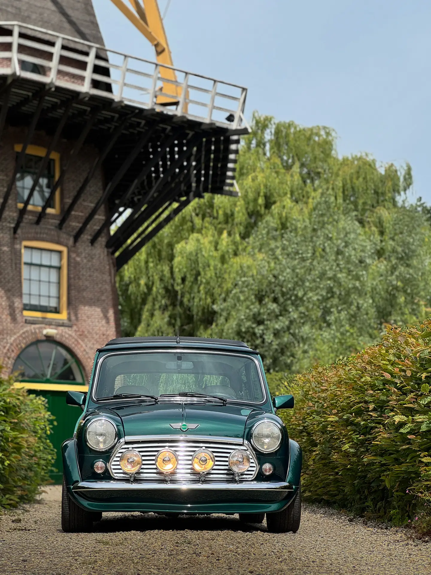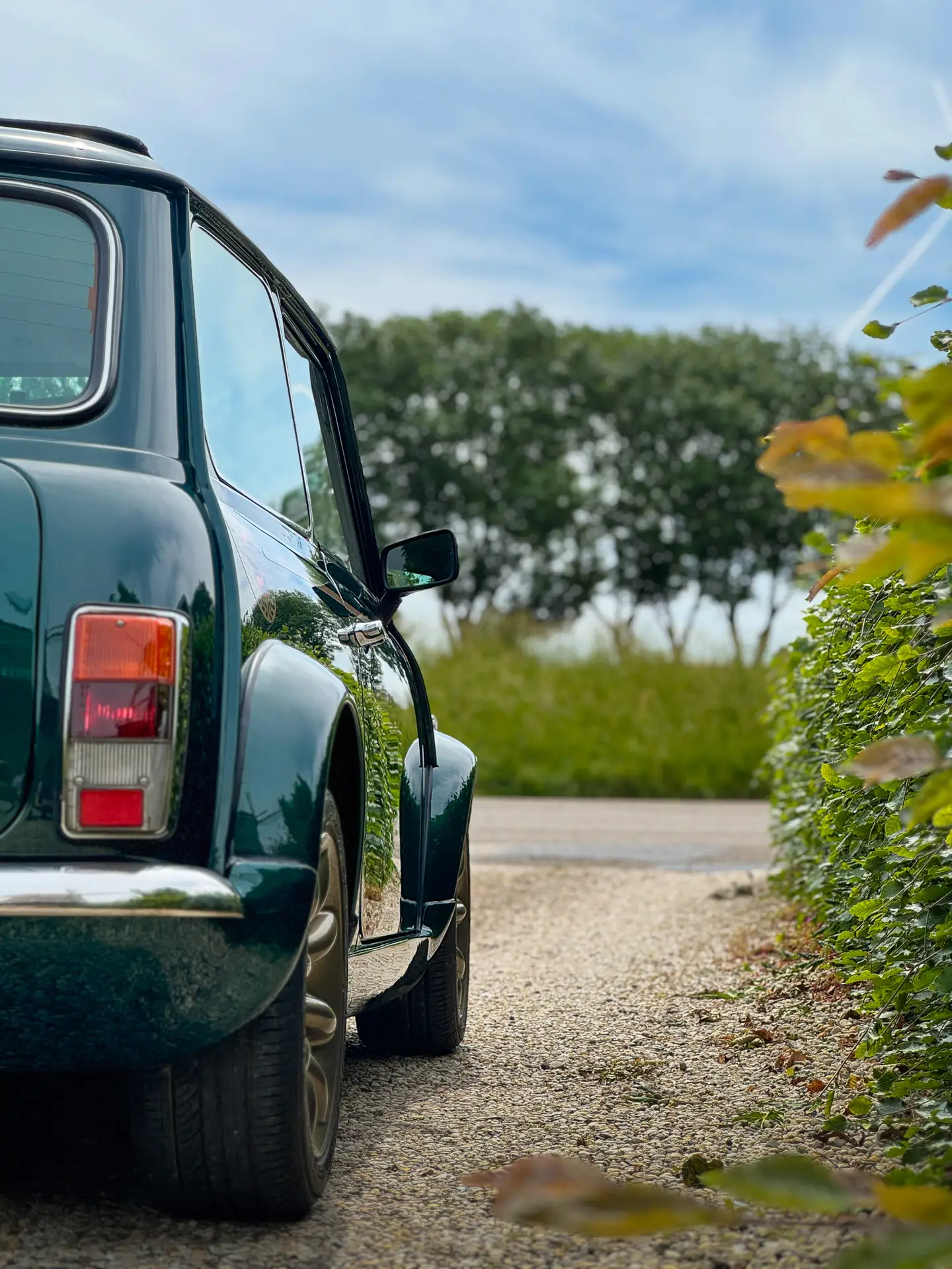 This 1998 Mini Cooper MPi in British Racing Green is in excellent condition. Recently imported from Italy, the car has always been kept under the sun and is completely rust-free. The original paint is stunning, and the underside still has the factory wax. A look in and around the car immediately shows the care and attention given to its maintenance.