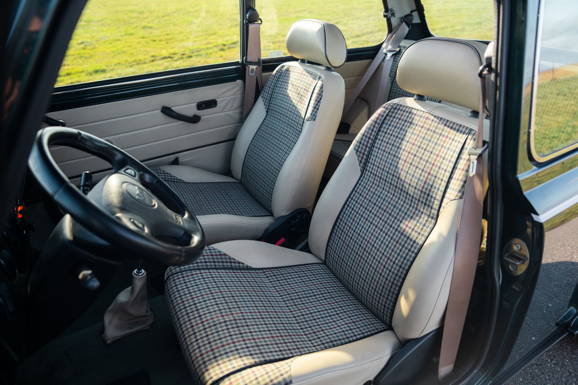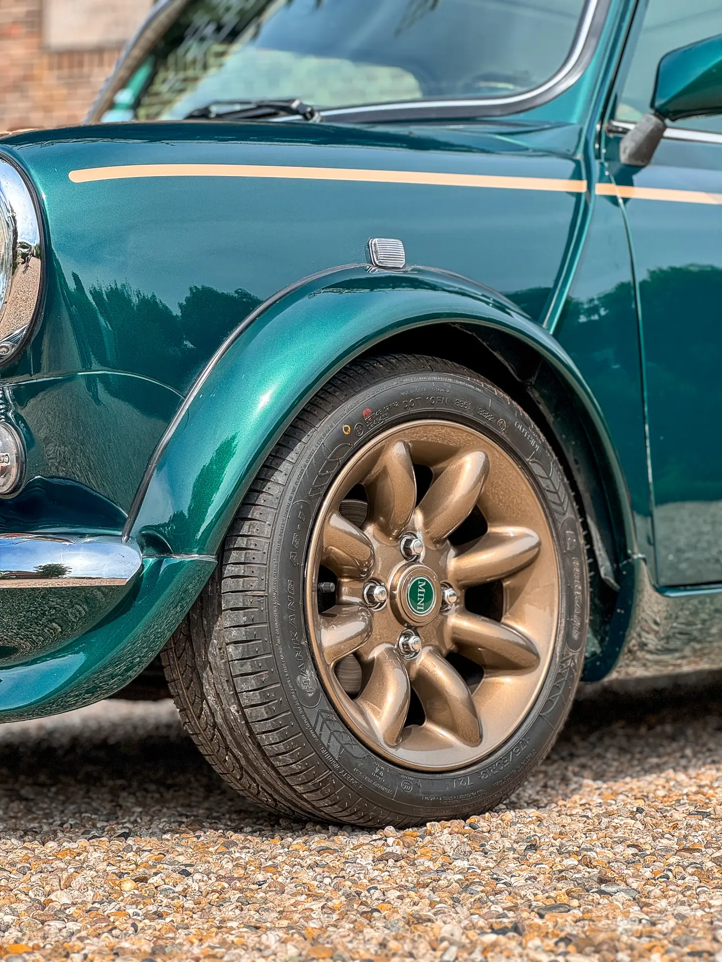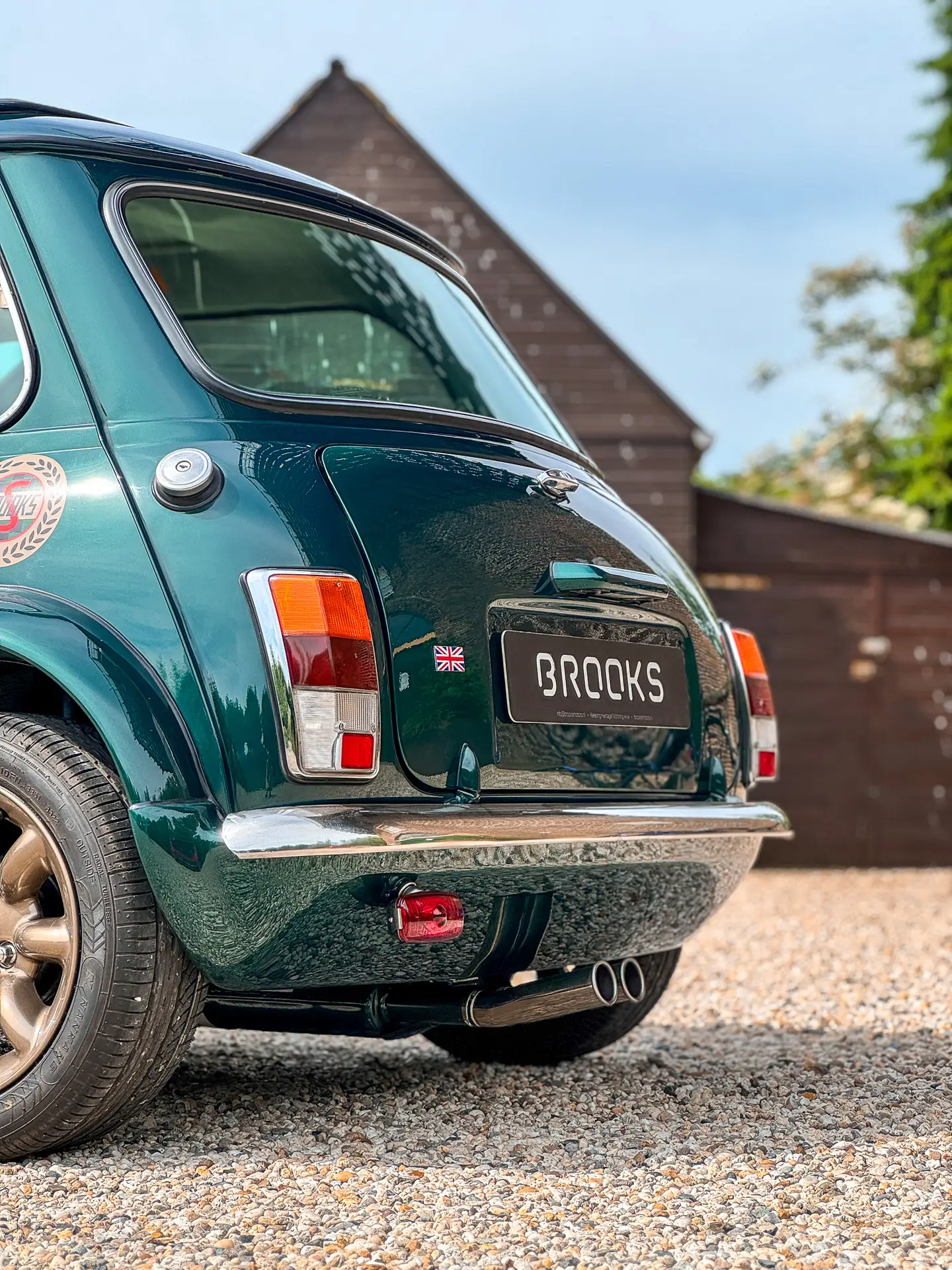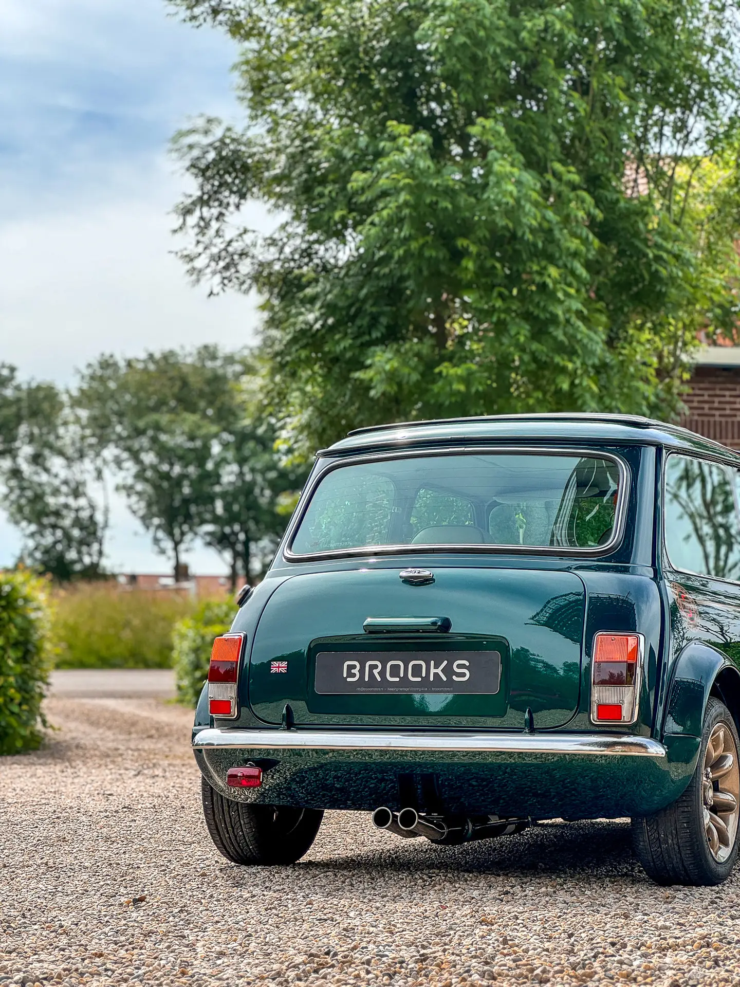 This 1998 Mini Cooper MPi in British Racing Green is in excellent condition. Recently imported from Italy, the car has always been kept under the sun and is completely rust-free. The original paint is stunning, and the underside still has the factory wax. A look in and around the car immediately shows the care and attention given to its maintenance.