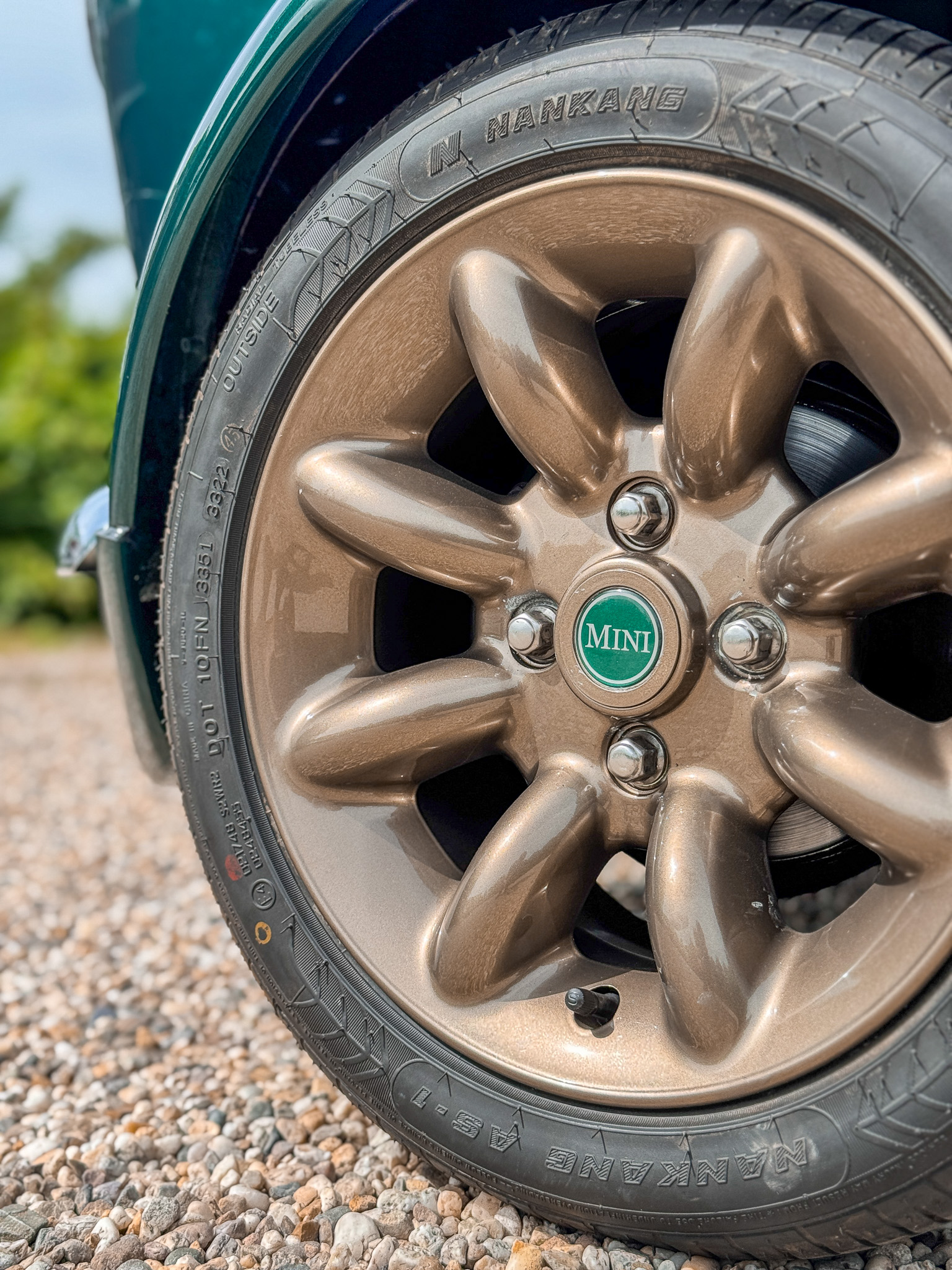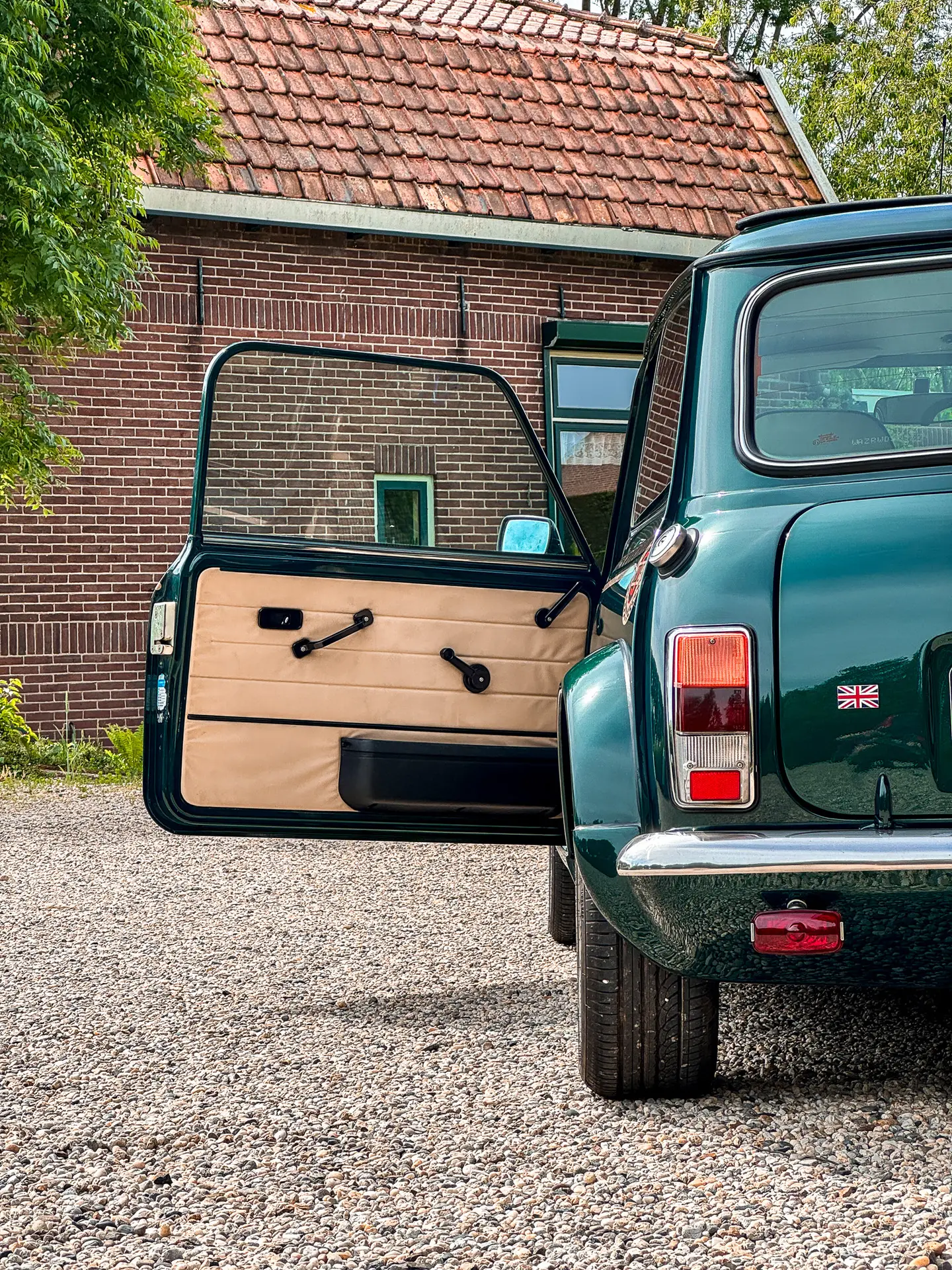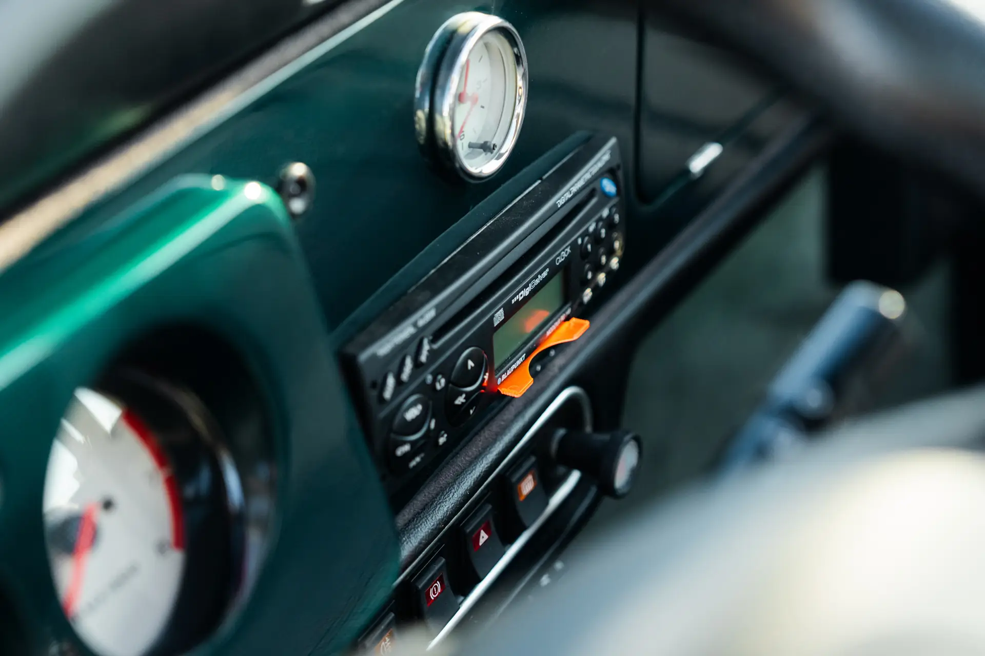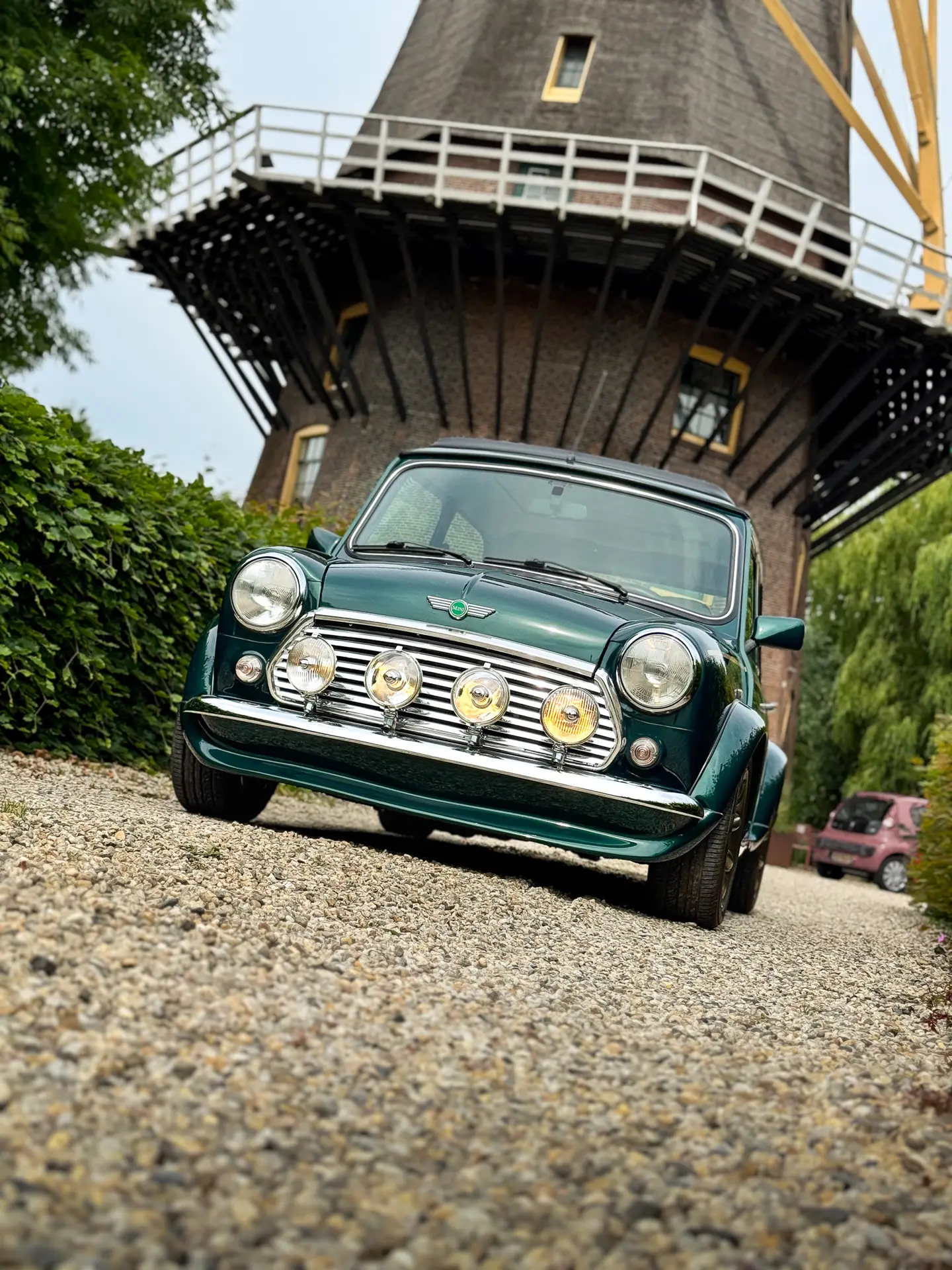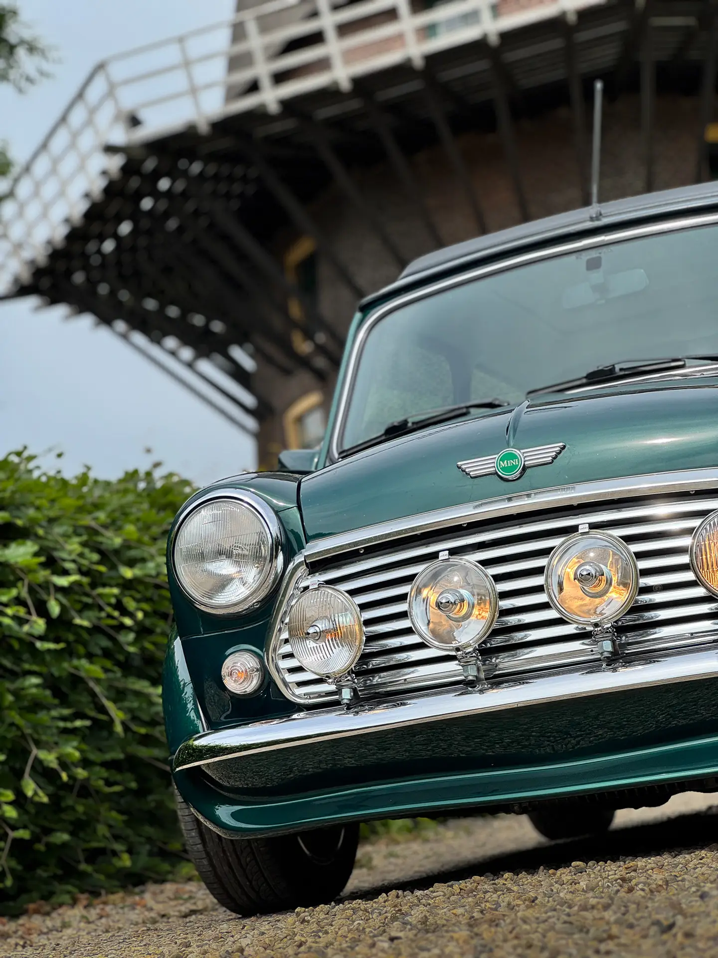 This 1998 Mini Cooper MPi in British Racing Green is in excellent condition. Recently imported from Italy, the car has always been kept under the sun and is completely rust-free. The original paint is stunning, and the underside still has the factory wax. A look in and around the car immediately shows the care and attention given to its maintenance.