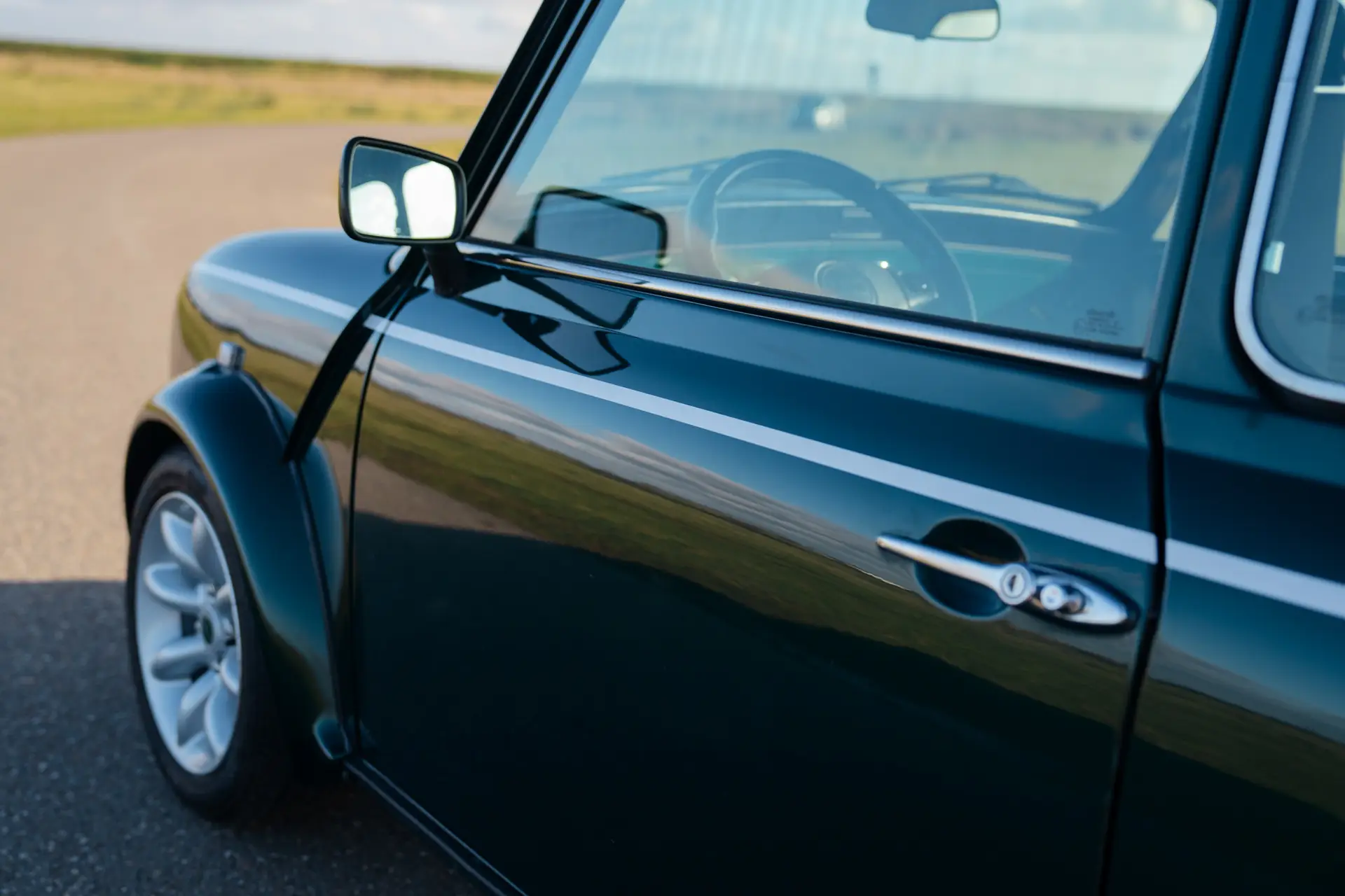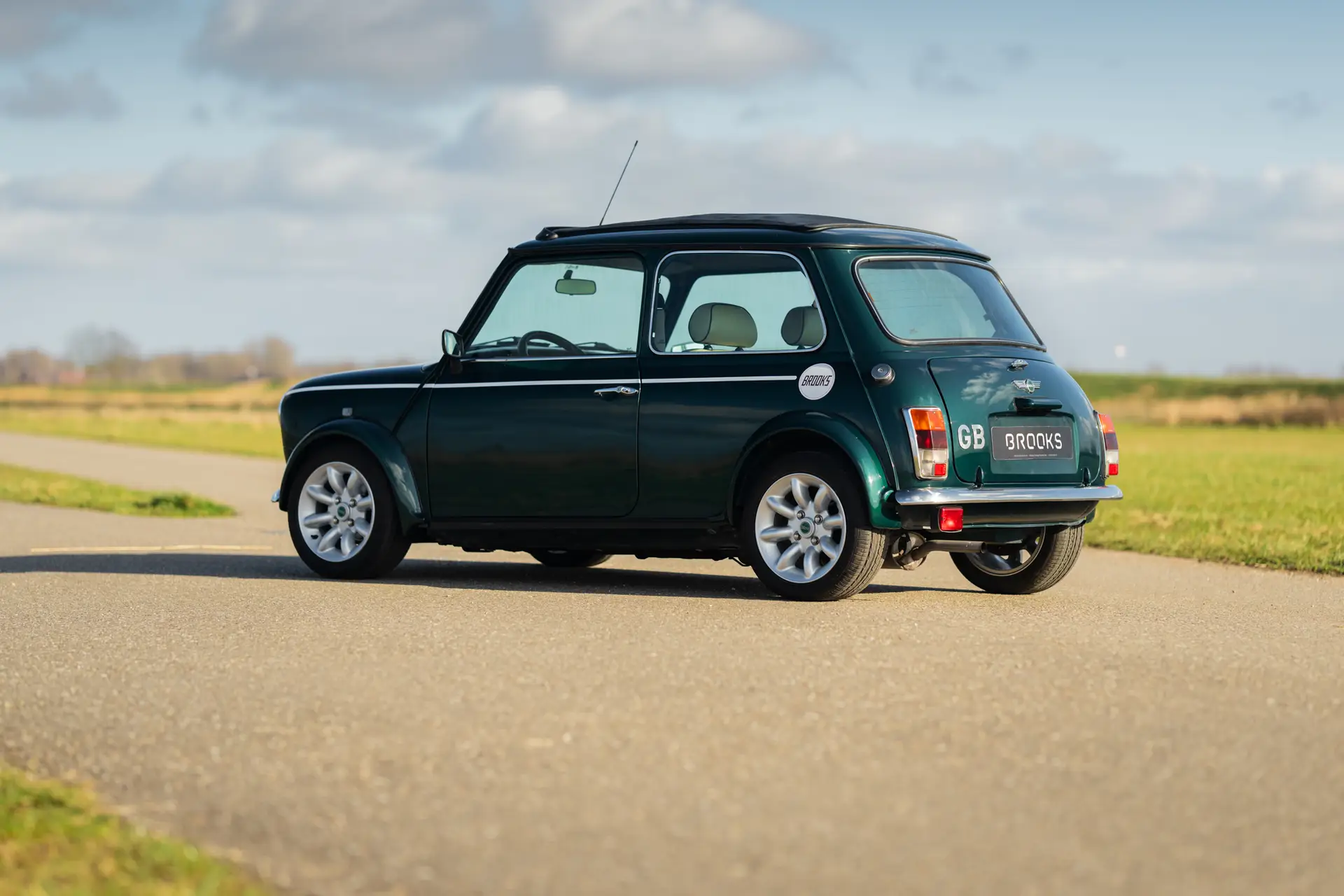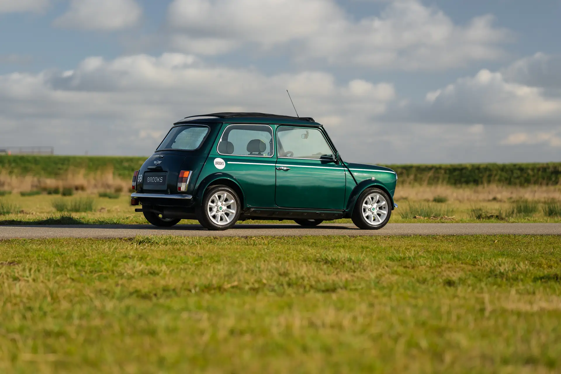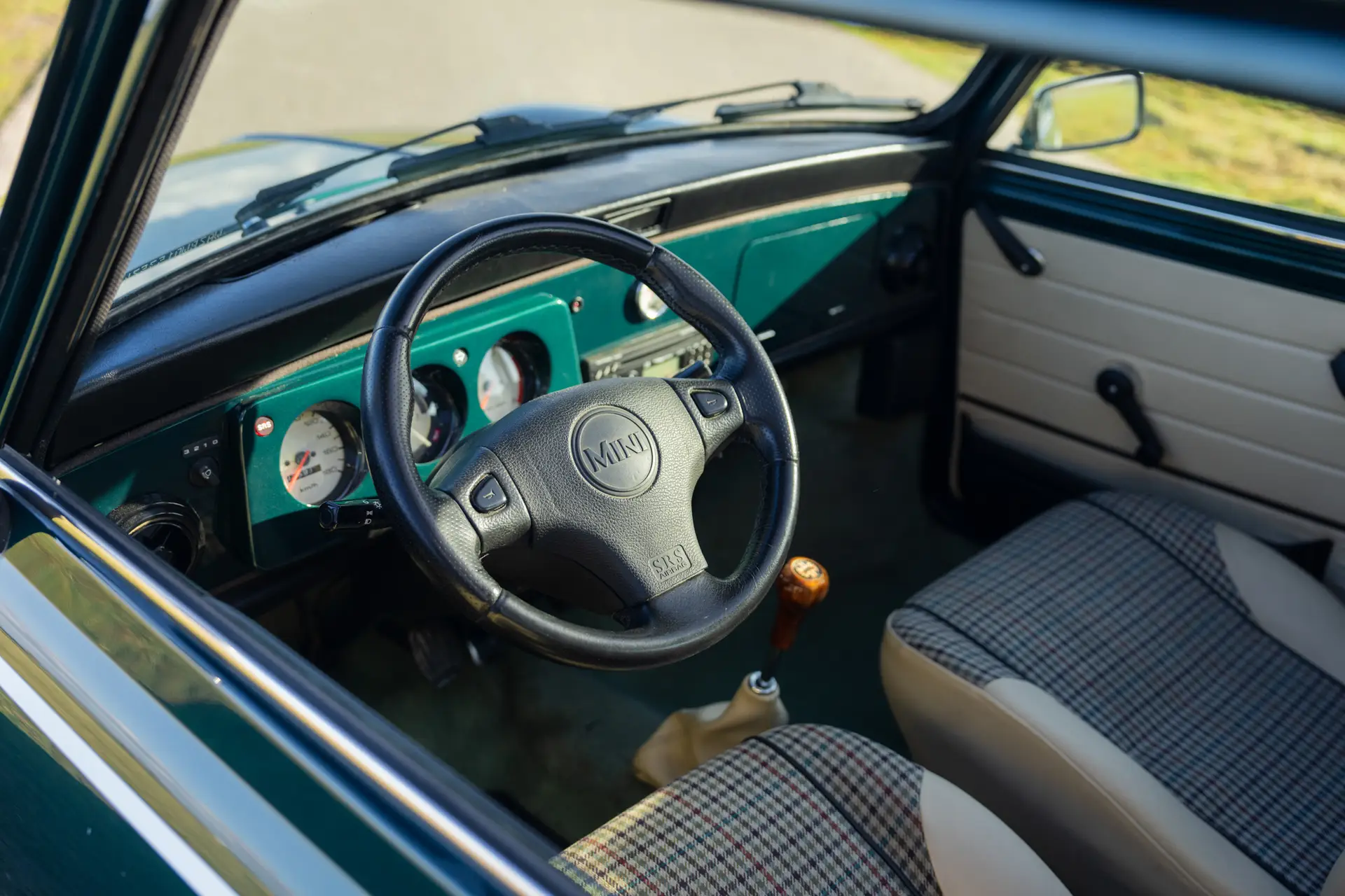 This 1998 Mini Cooper MPi in British Racing Green is in excellent condition. Recently imported from Italy, the car has always been kept under the sun and is completely rust-free. The original paint is stunning, and the underside still has the factory wax. A look in and around the car immediately shows the care and attention given to its maintenance.